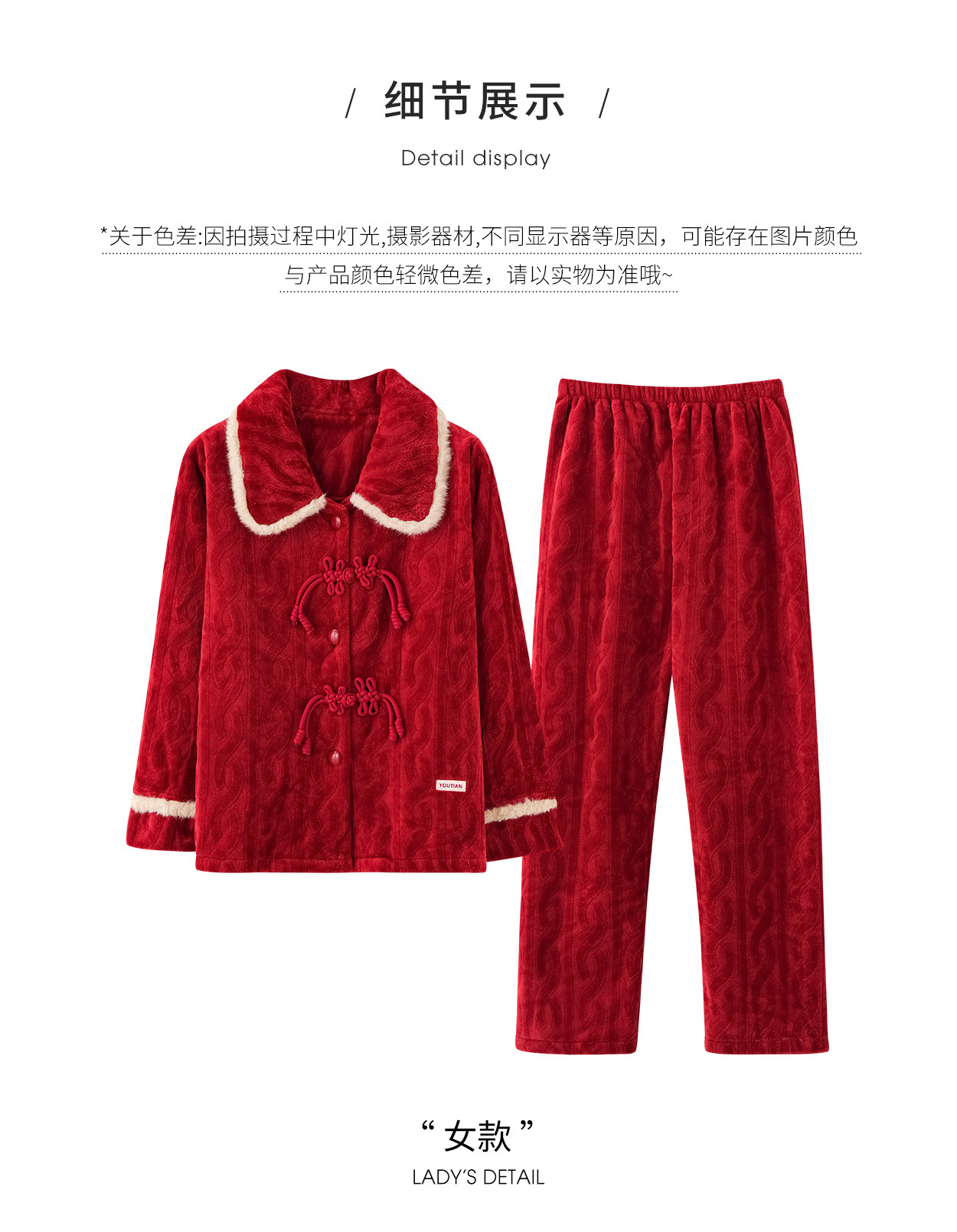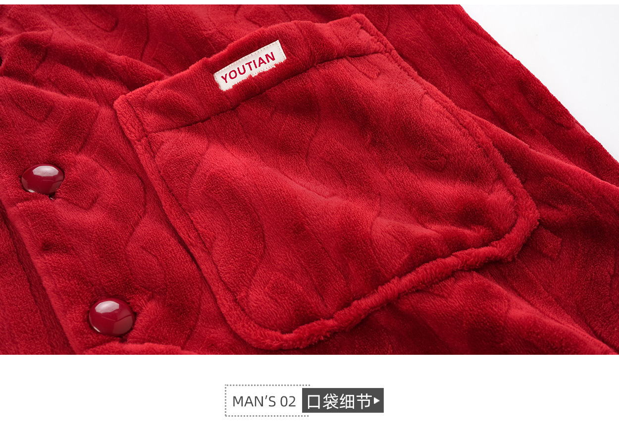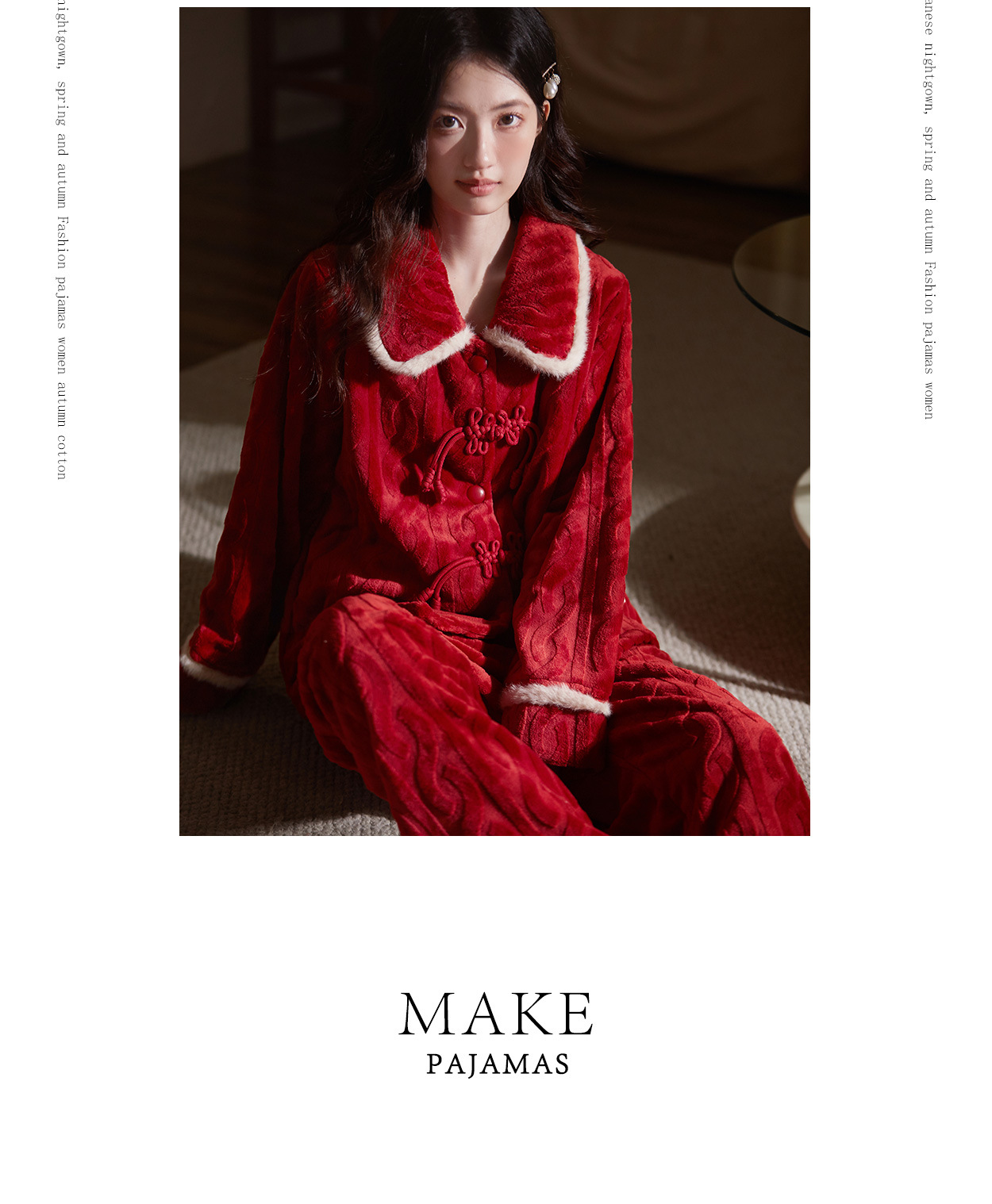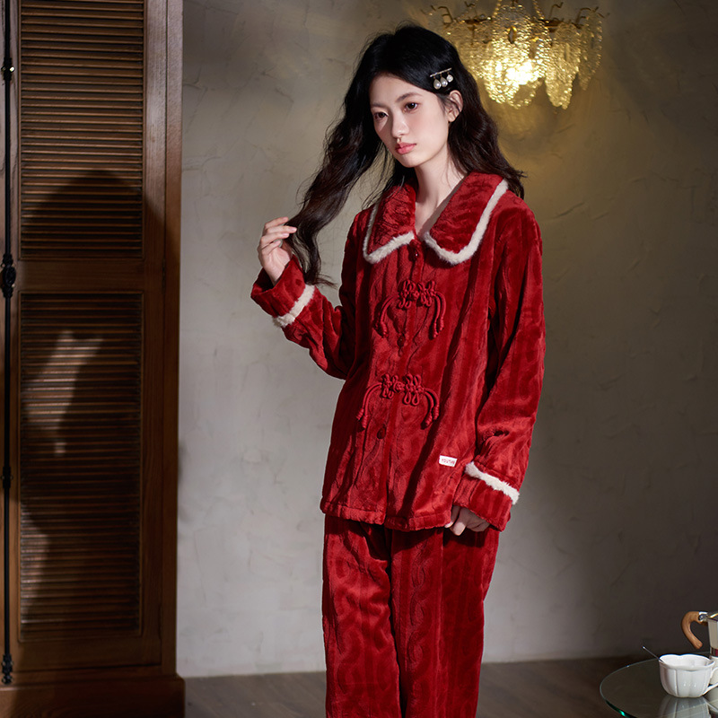 커플 잠옷 여성의 가을과 겨울 국가 스타일 레드 웨딩 산호 양털 홈 의류 남성 세트