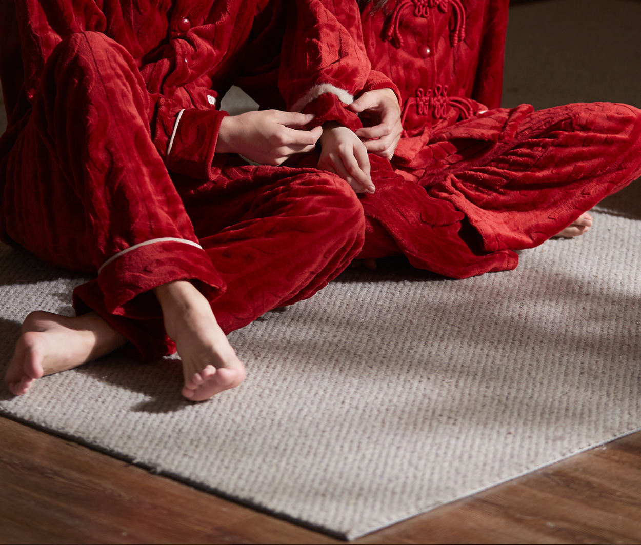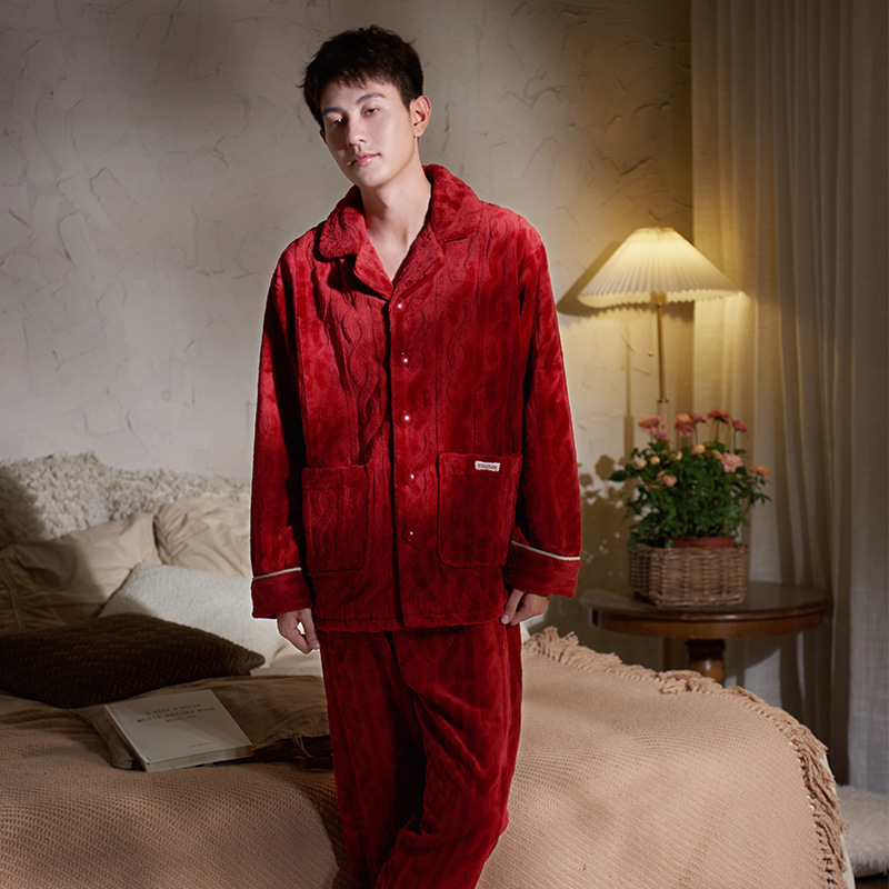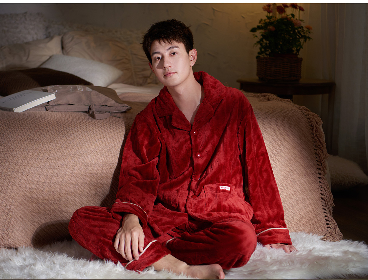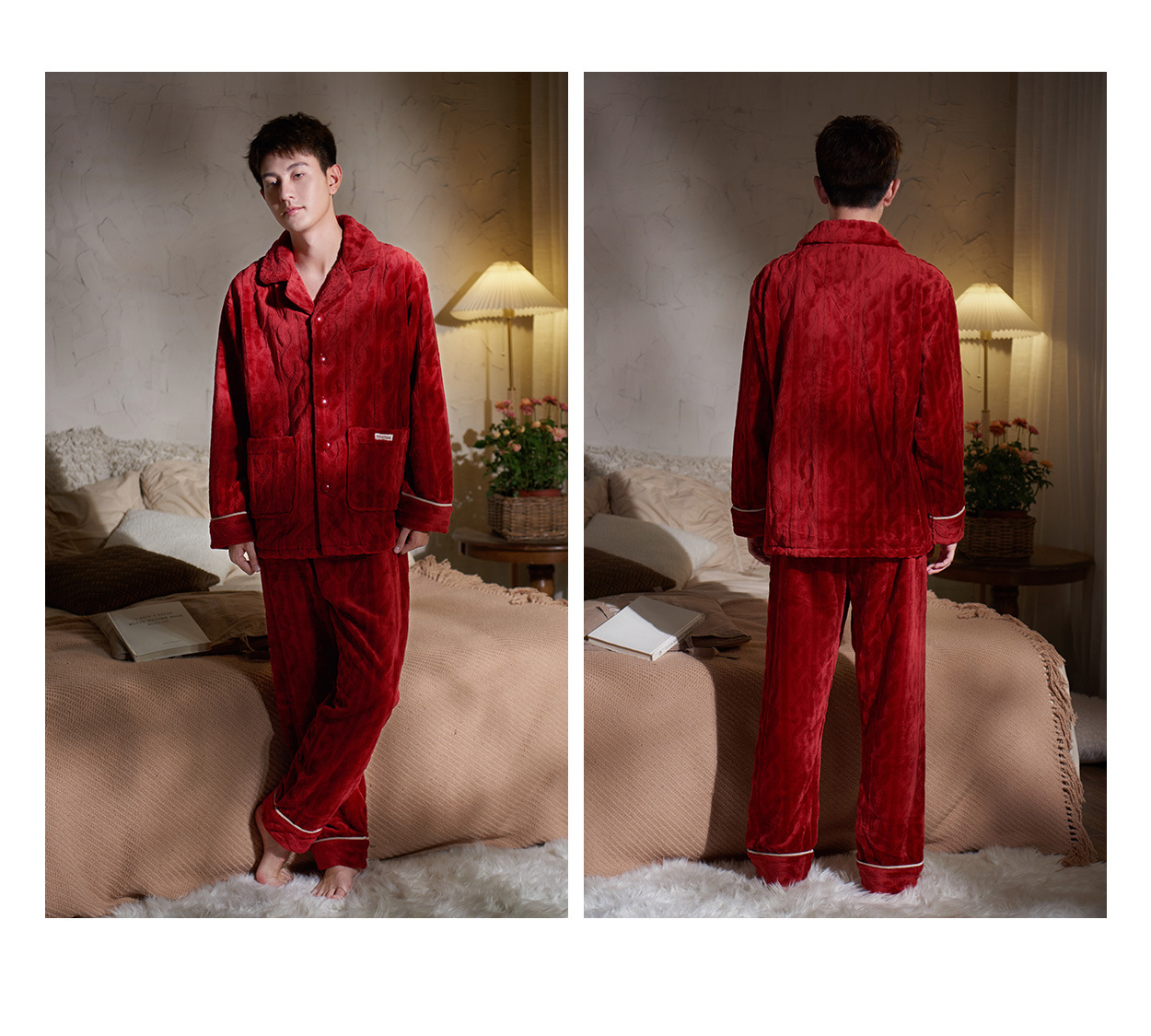 커플 잠옷 여성의 가을과 겨울 국가 스타일 레드 웨딩 산호 양털 홈 의류 남성 세트