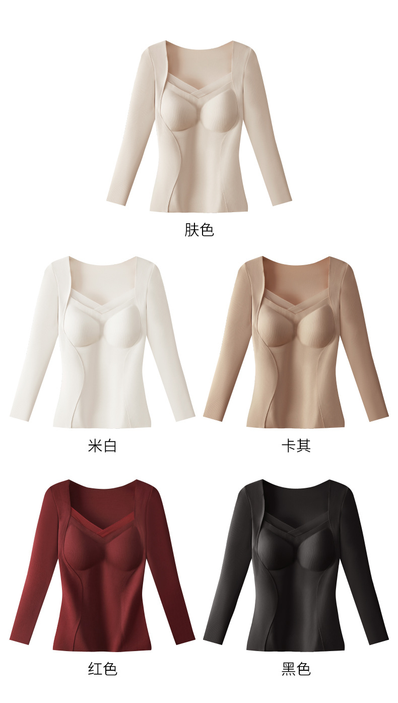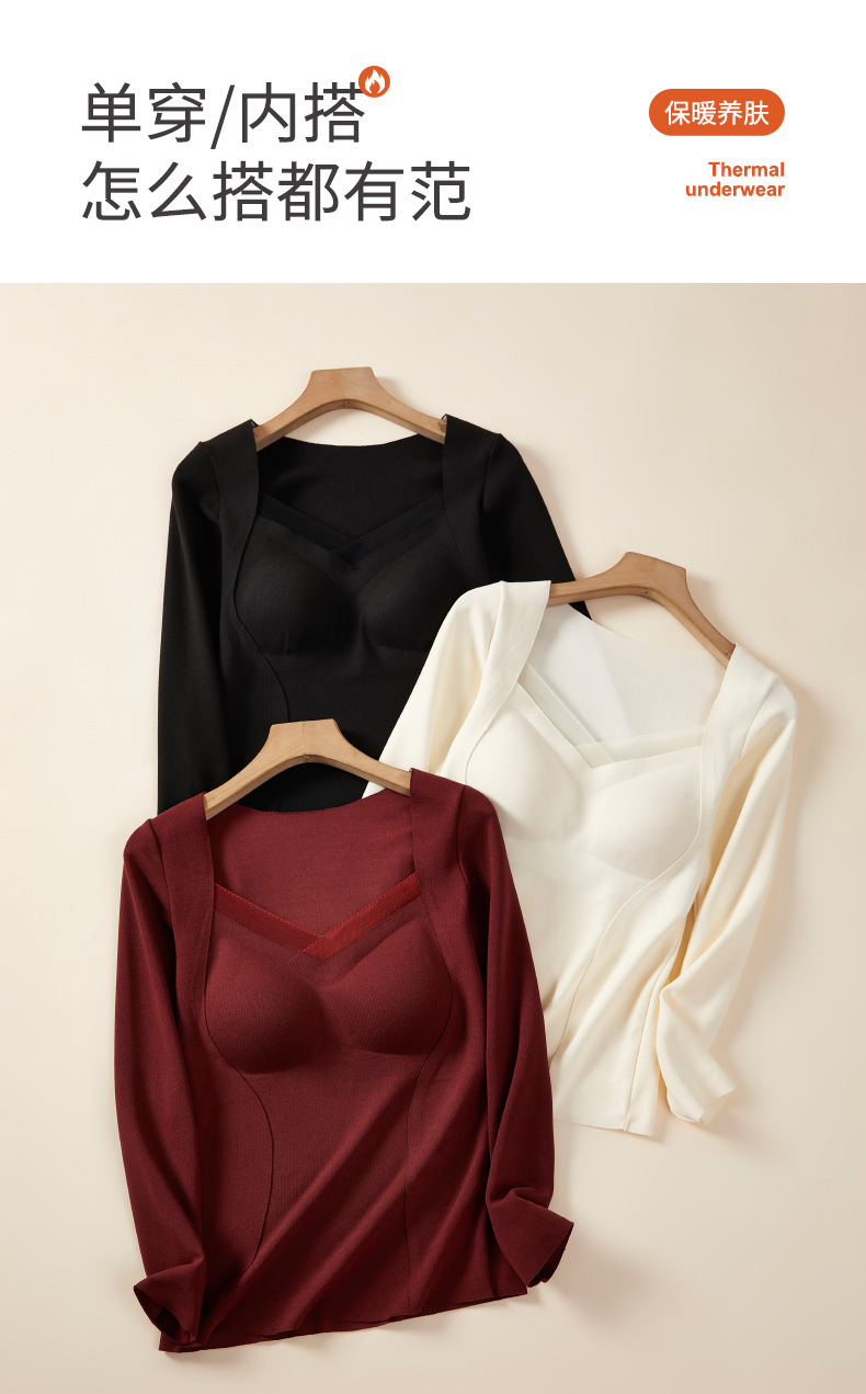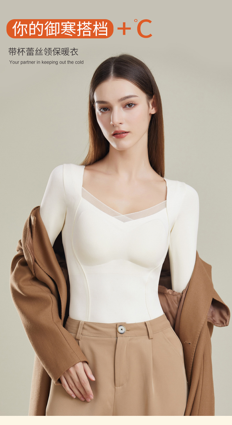 가을과 겨울 열 속옷 긴팔 여성용 벨트 가슴 패드 착용 프리 브라 원활한 슬림베이스 셔츠 레이스 탑 여성스토어 가기