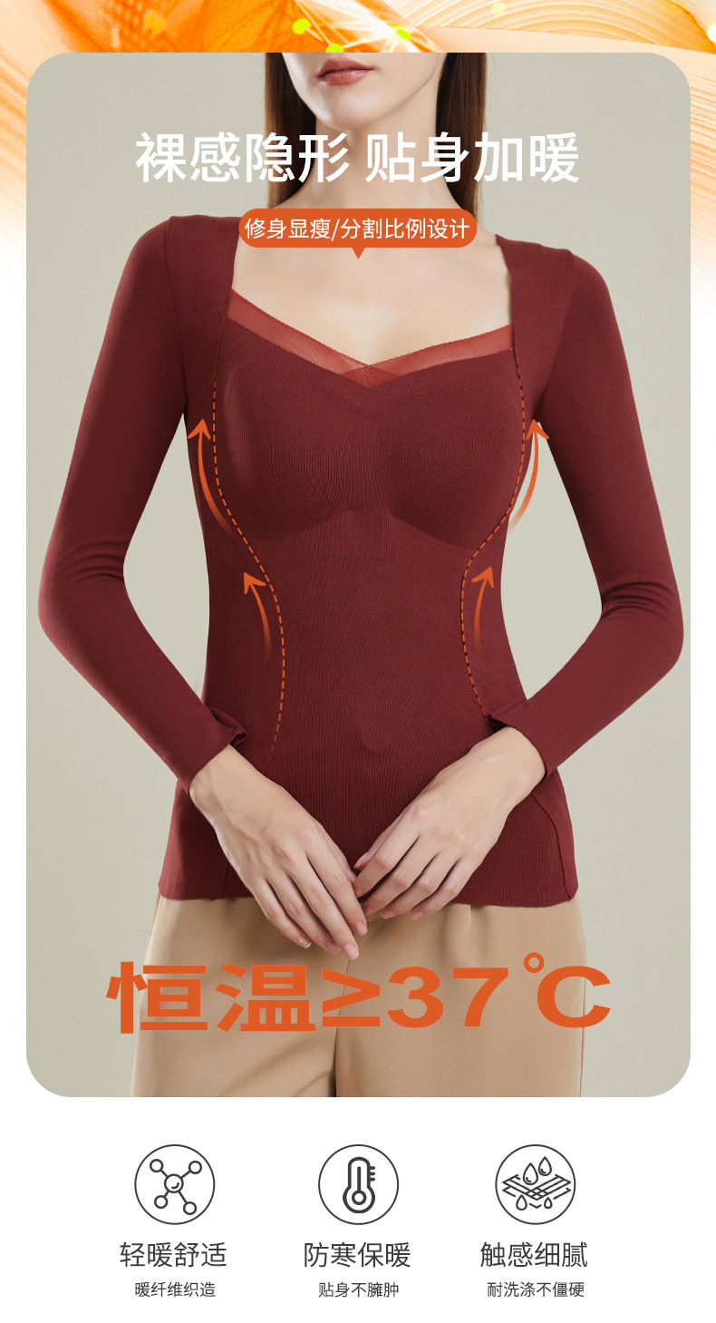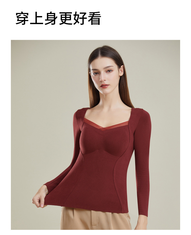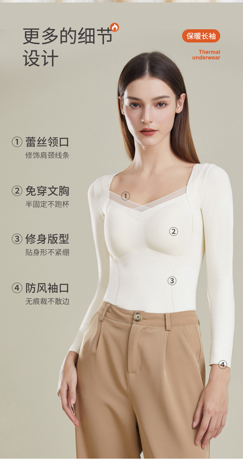 가을과 겨울 열 속옷 긴팔 여성용 벨트 가슴 패드 착용 프리 브라 원활한 슬림베이스 셔츠 레이스 탑 여성스토어 가기