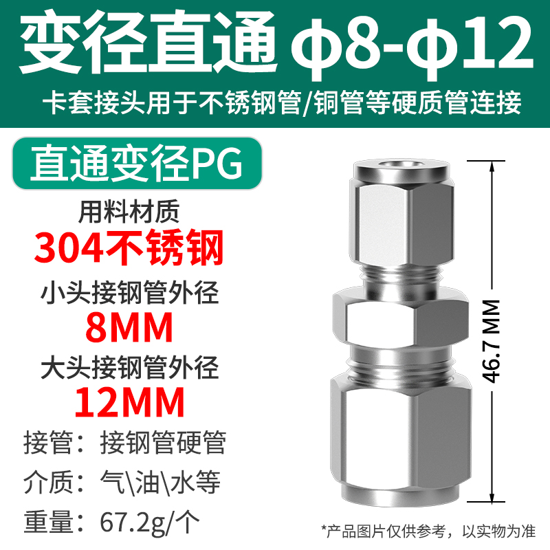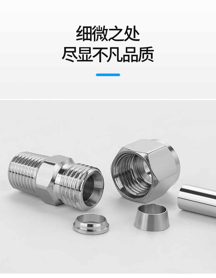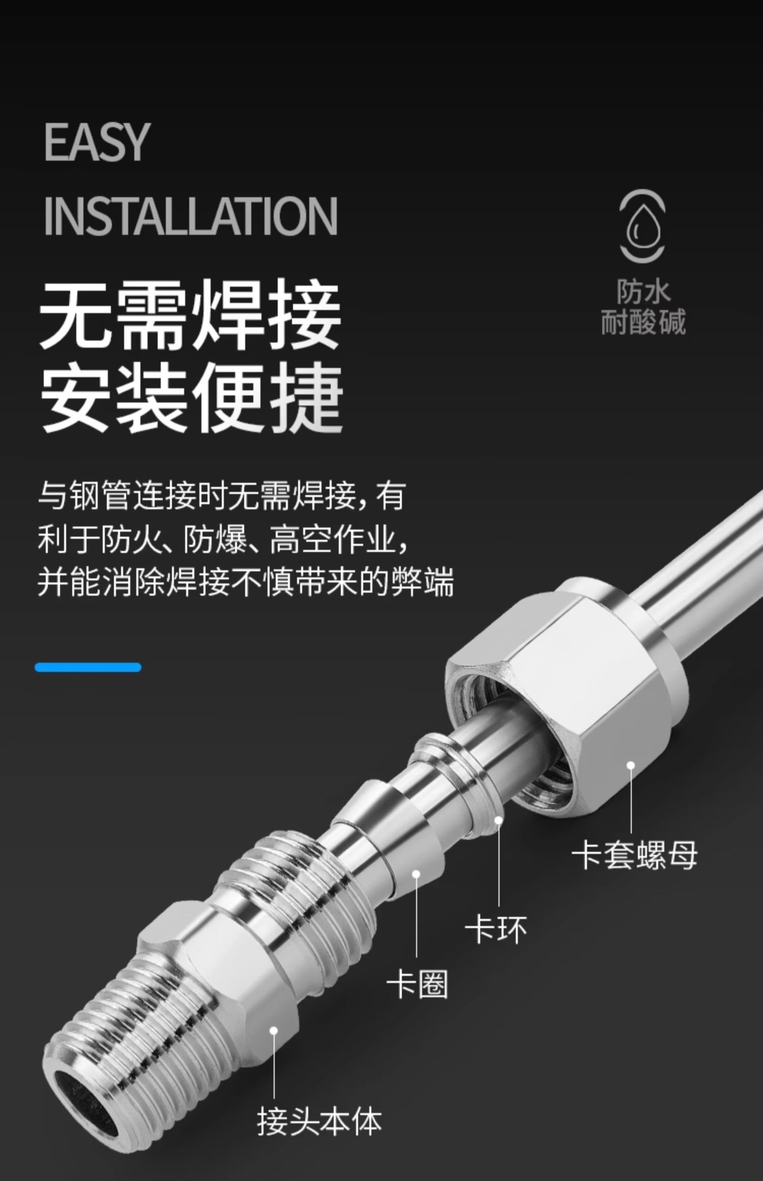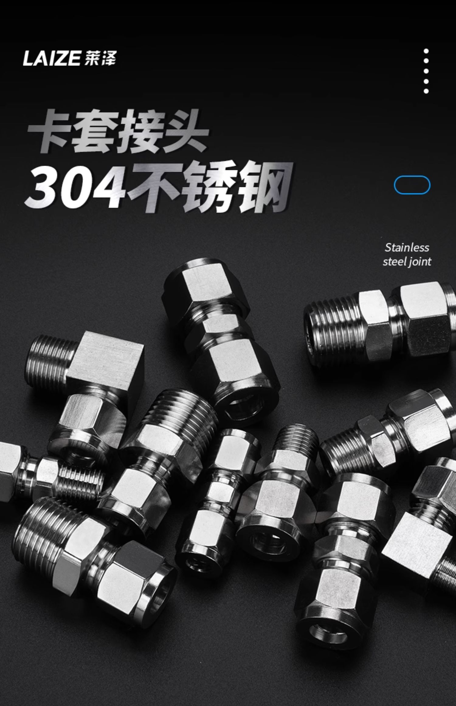 304 스테인레스 스틸 페룰 조인트 가스 파이프 빠른 팔꿈치 가스 소스 직선형 터미널 계측기 감소 직경 강철 구리 파이프