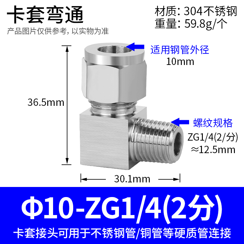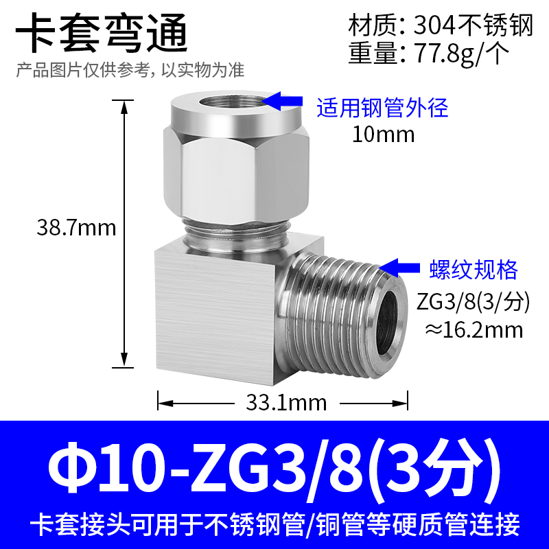• Φ10-ZG1/4에 직접 연결된 304 카드 슬리브(2포인트)
