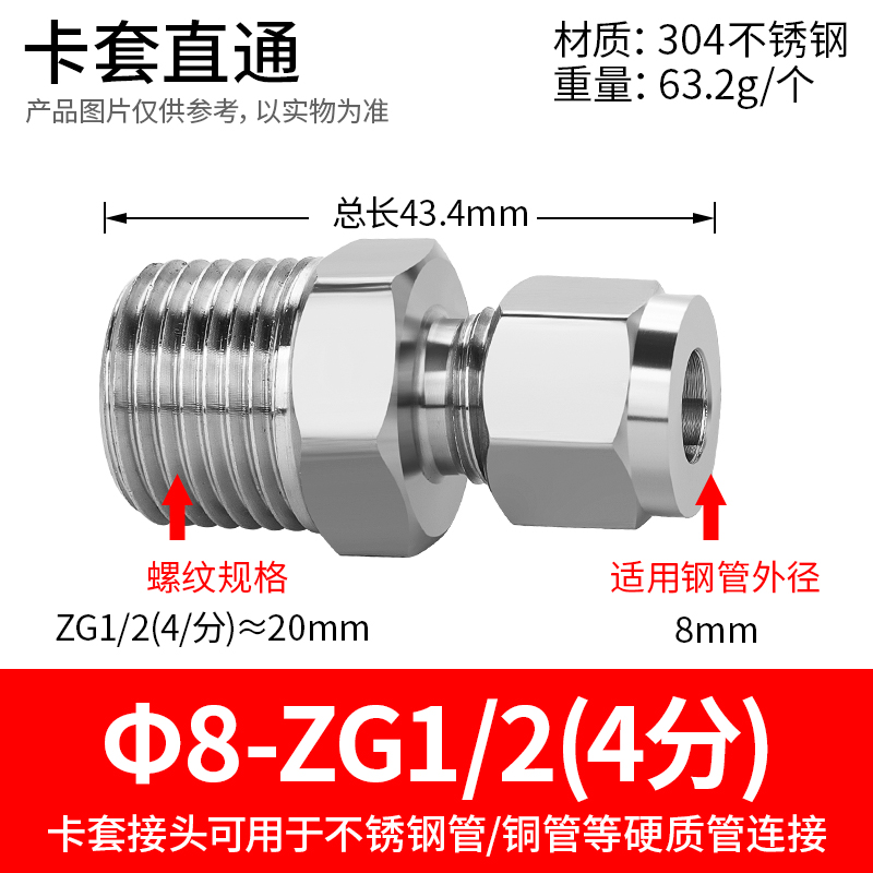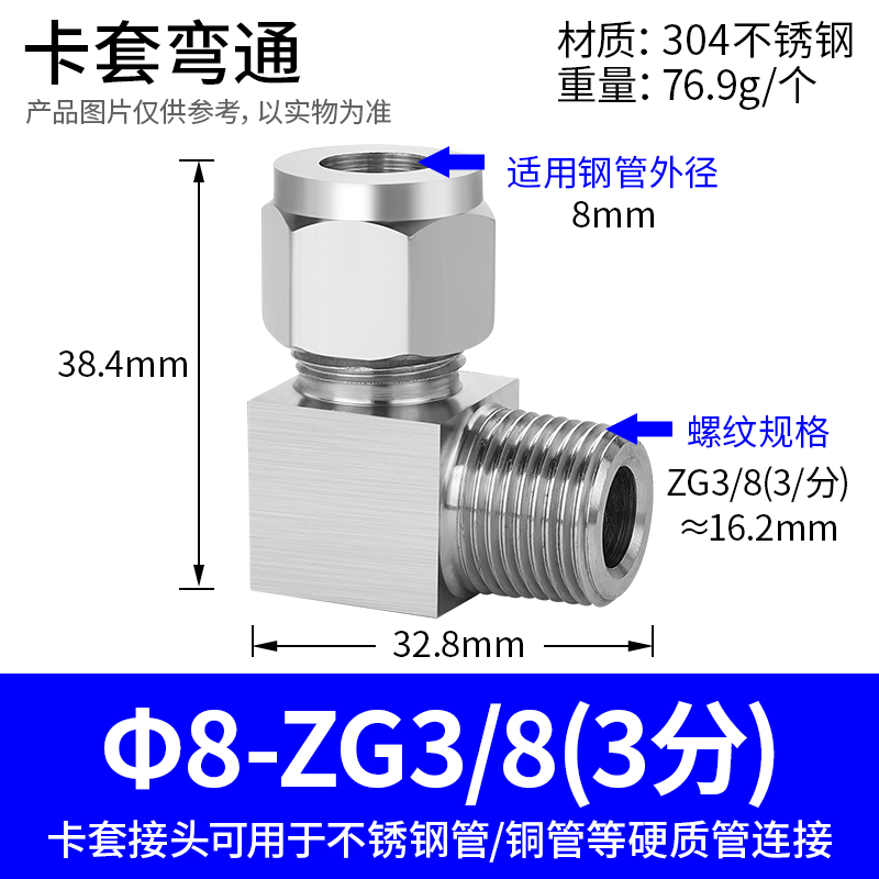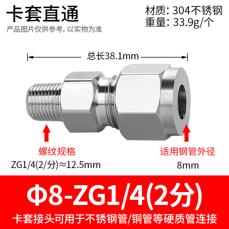 • Φ8-ZG1/4에 직접 연결된 304 카드 슬리브(2포인트)