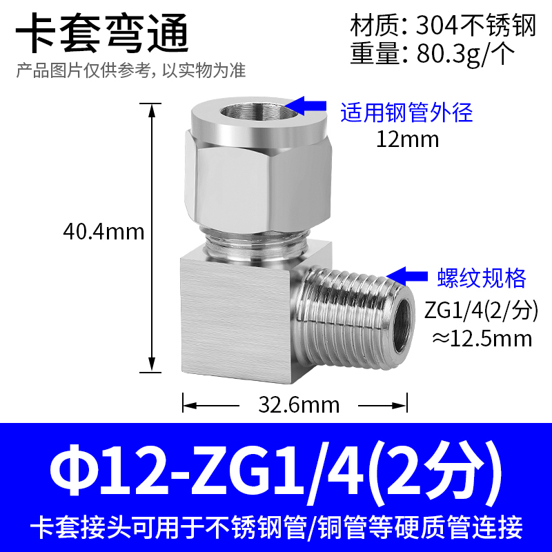 • Φ12-ZG1/4에 직접 연결된 304 카드 슬리브(2포인트)