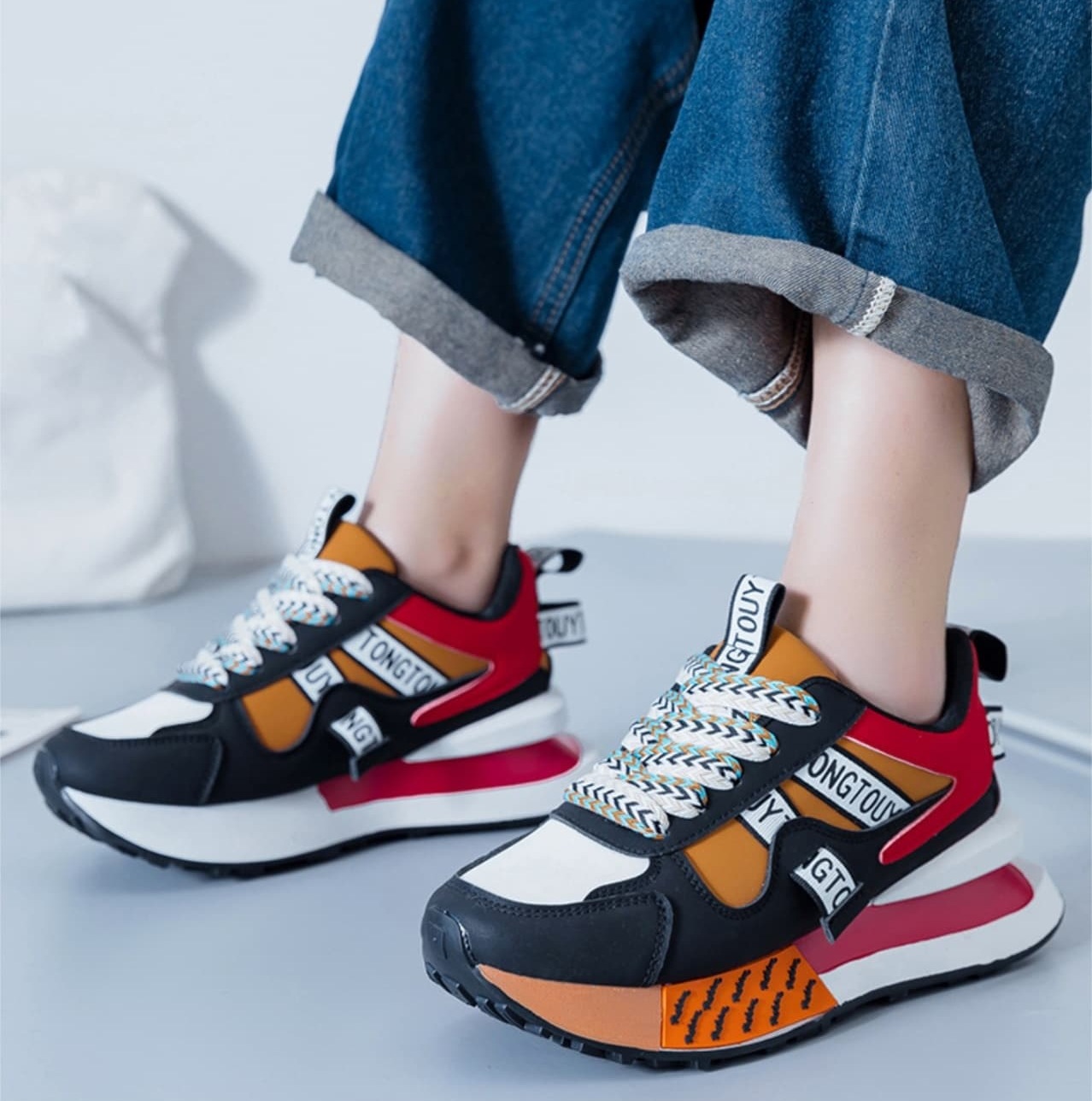 두꺼운 밑창 인 트렌디 한 올매치 틈새 패션 아빠 신발 레인보우 미드 로우 탑 폭발성 스포츠 캐주얼 신발 빈티지 스포츠스토어 가기