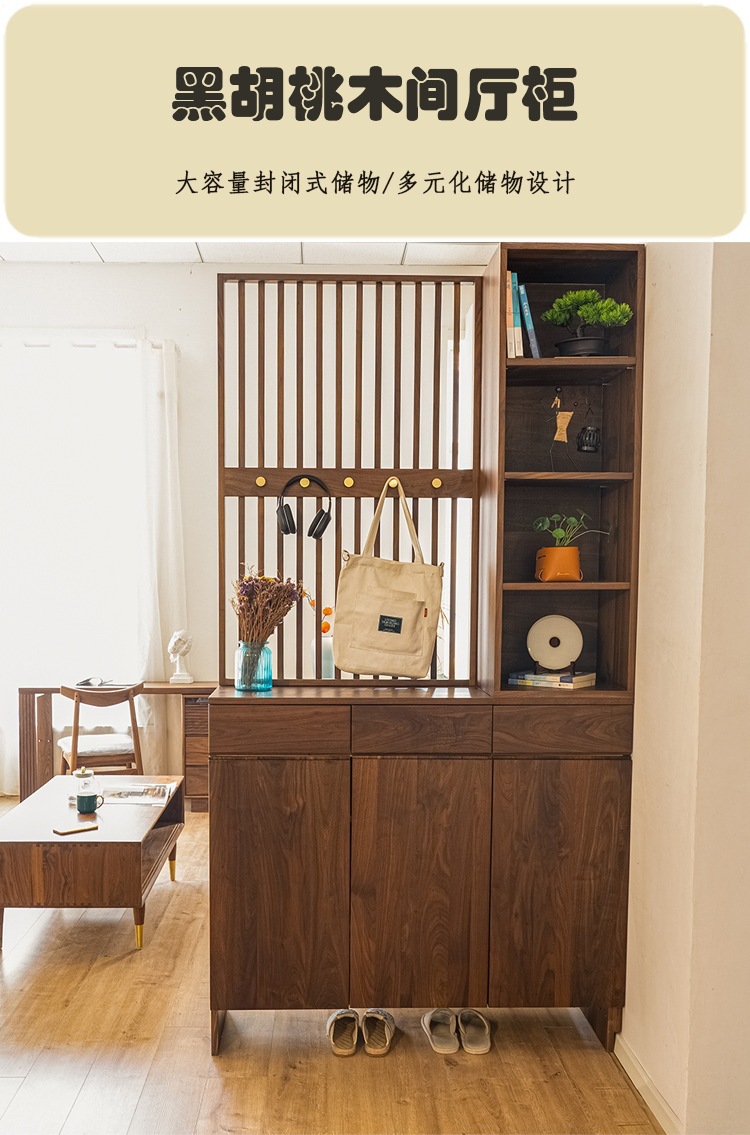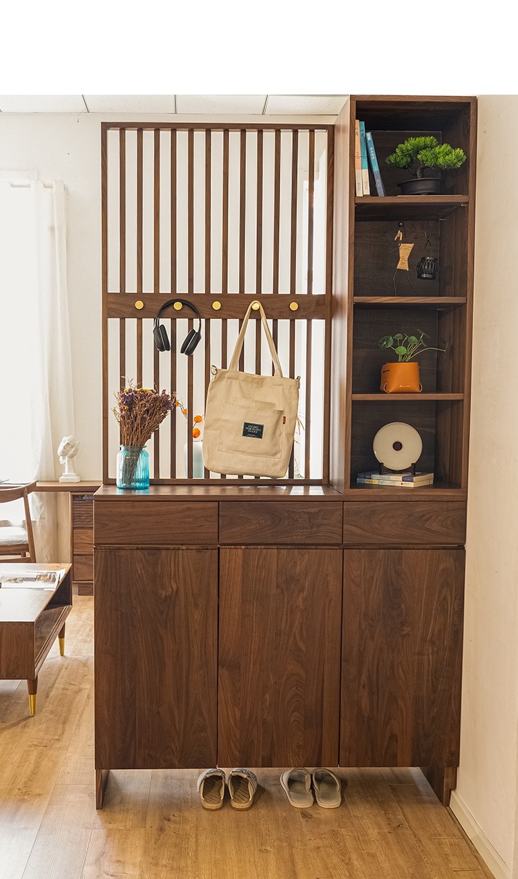 풀 솔리드 우드 입구 캐비닛 신발 캐비닛 통합 스크린 파티션 거실 양면 호두 입구 스크린 파티션 캐비닛스토어 가기
