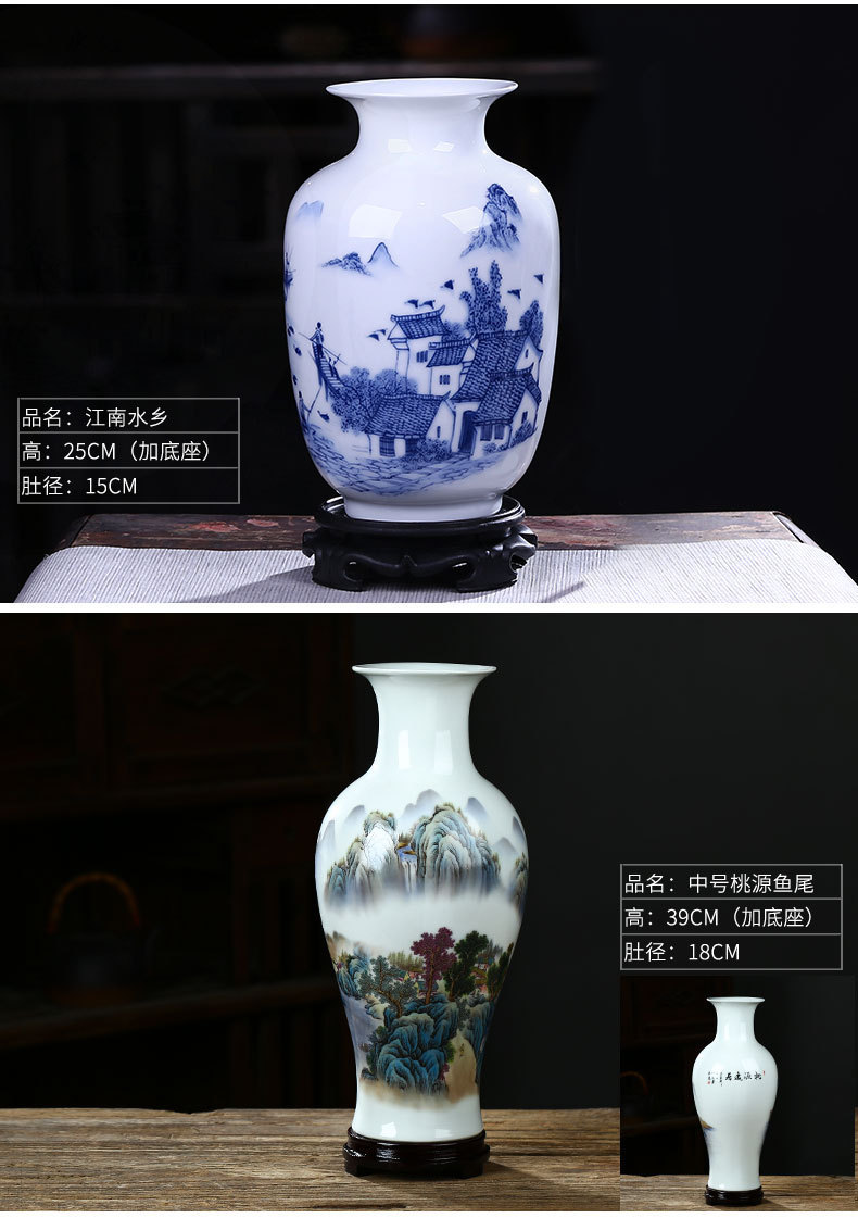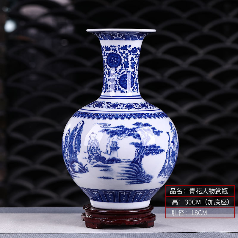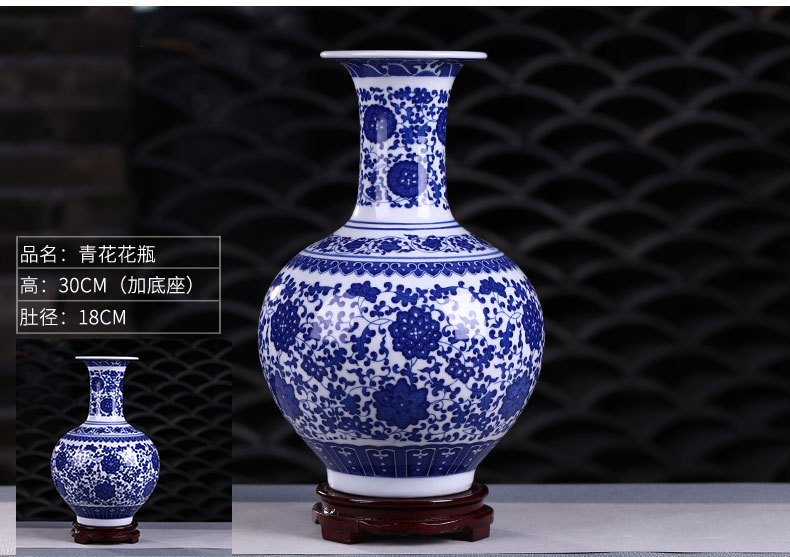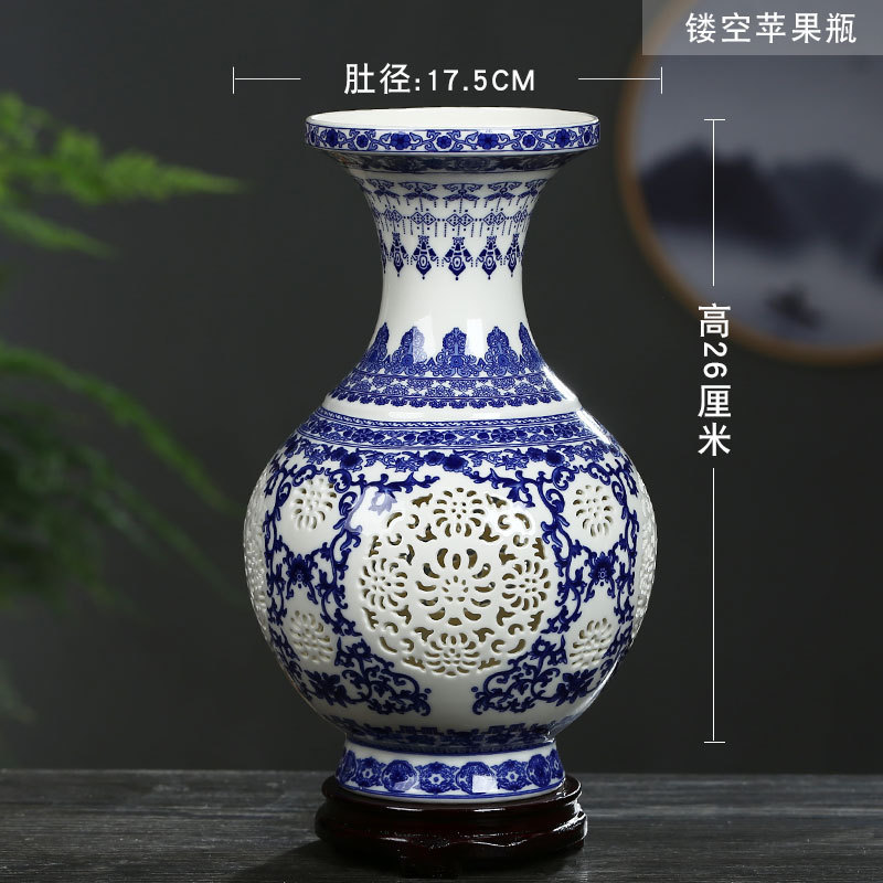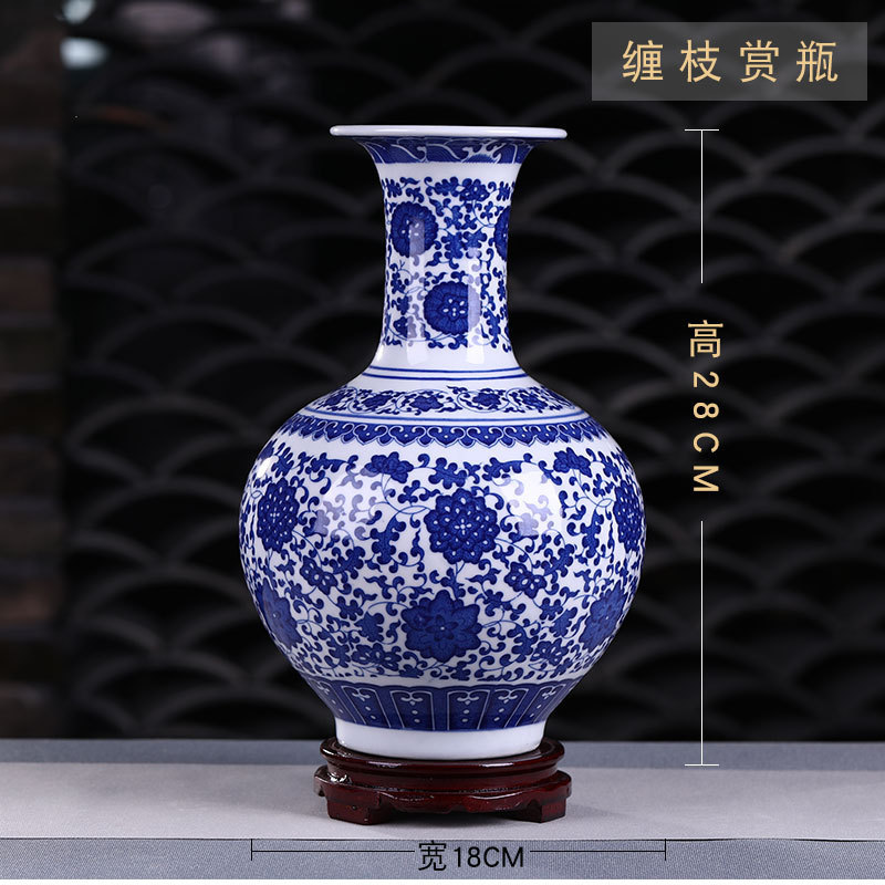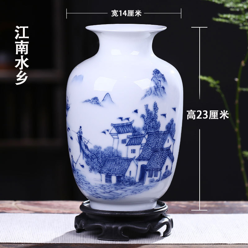 Jingdezhen 도자기 작은 꽃병 장식 꽃 배열 도자기 병 거실 골동품 프레임 장식 공예 파란색과 흰색 도자기 병스토어 가기