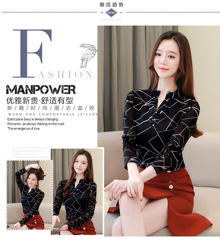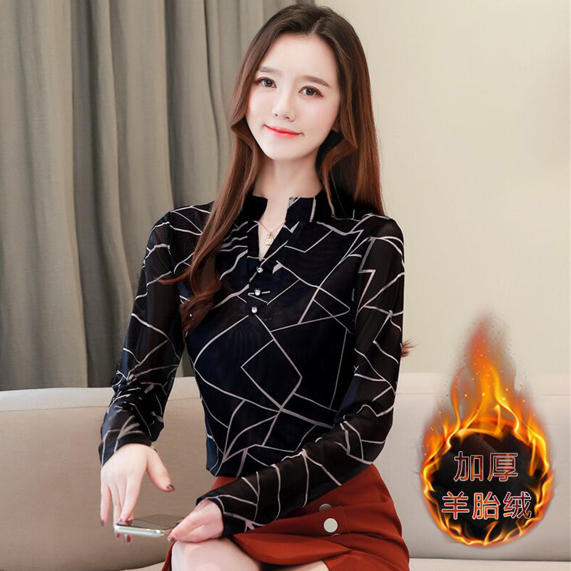 공장 직접 2024 새로운 패션 줄무늬 가을과 겨울 셔츠 여성의 긴 소매 기모 기본 셔츠 스탠드 칼라 쉬폰 셔츠스토어 가기