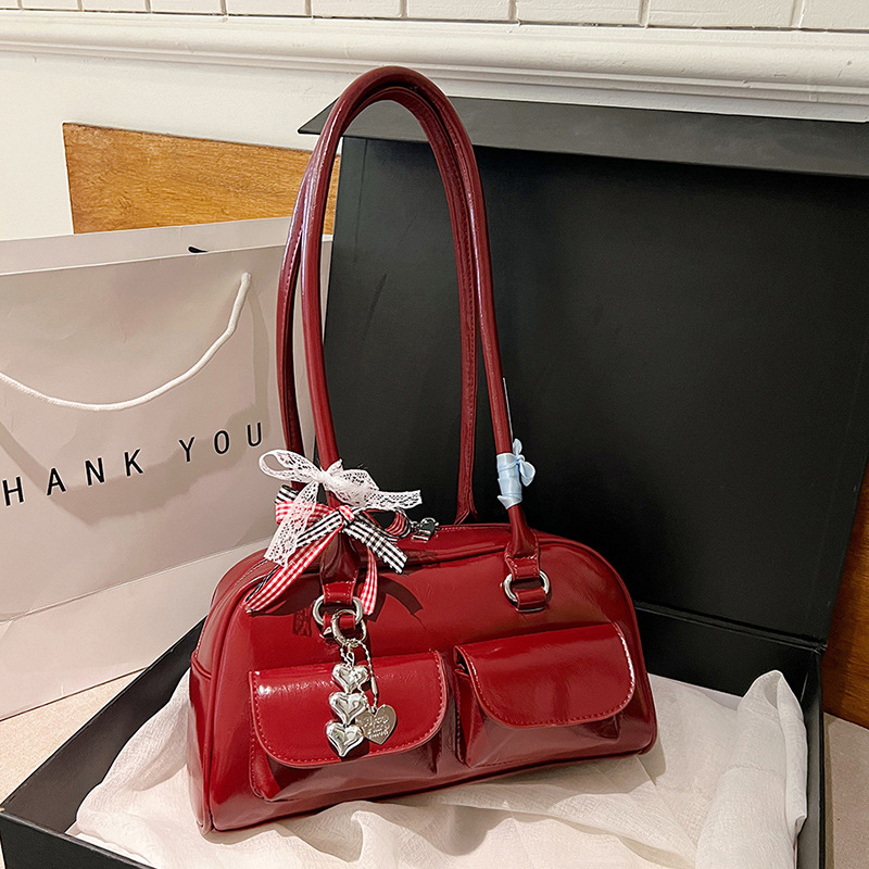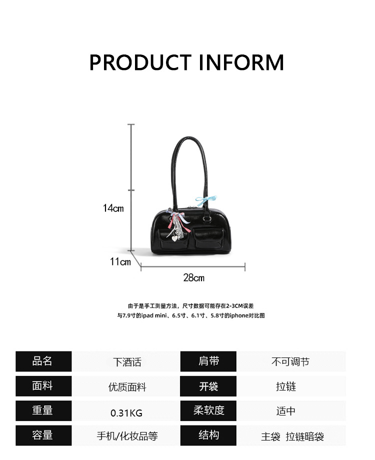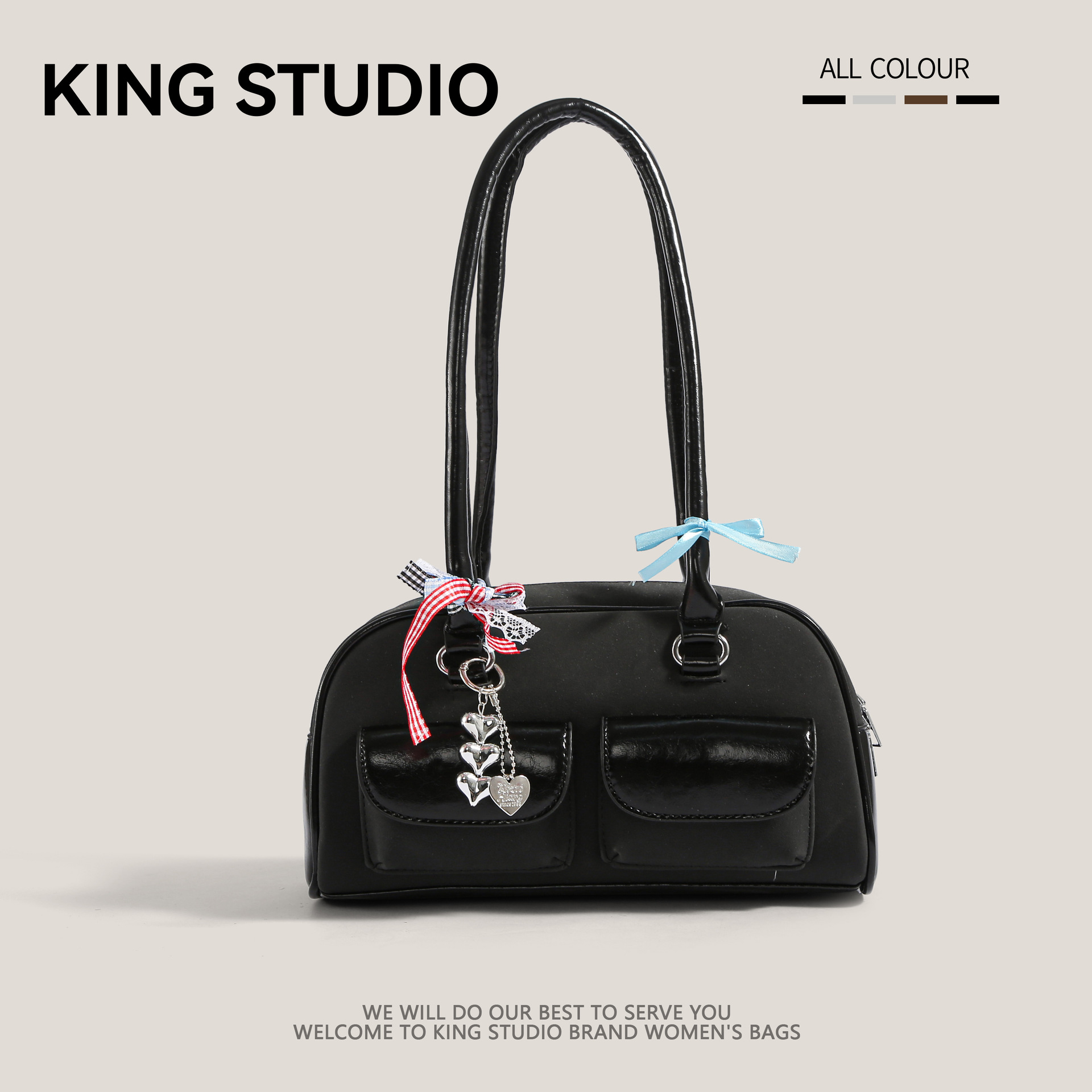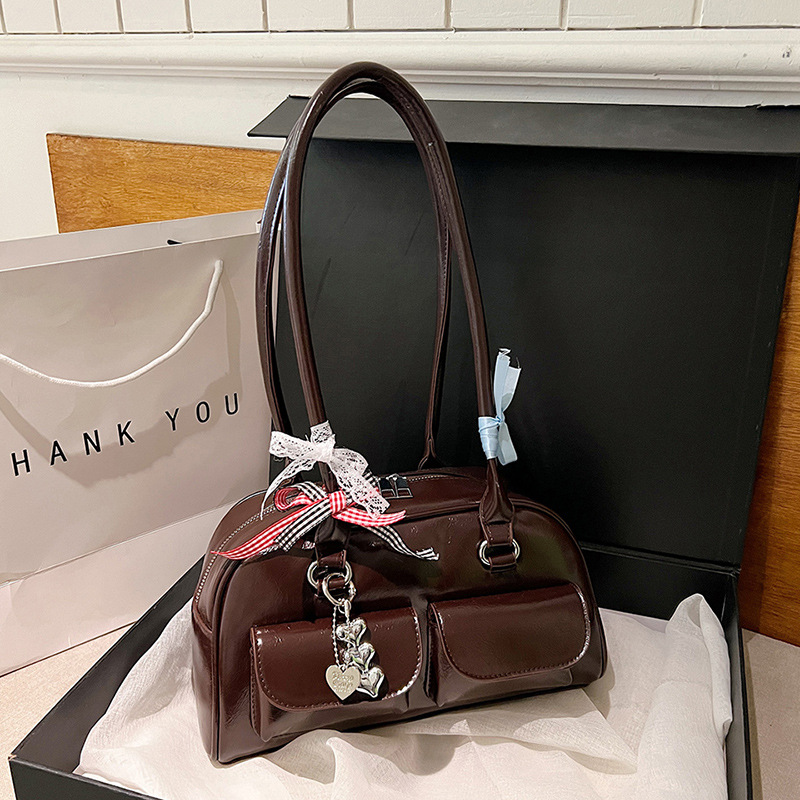 아픈 바늘 Xu Yunzhen 동일 스타일 볼링 백 한국 블로거 니치 올 매치 보스턴 토트 백 언더 암 숄더 백스토어 가기