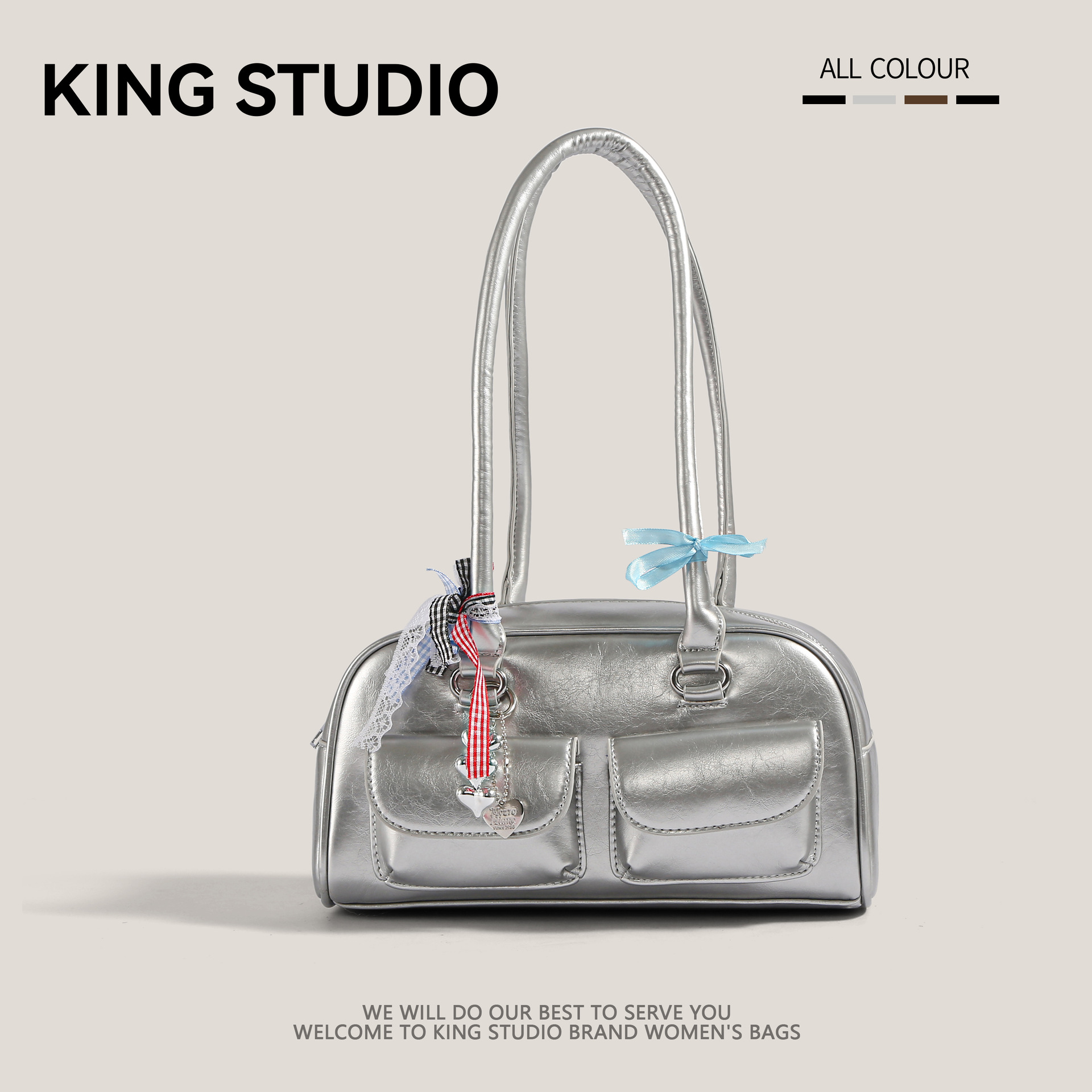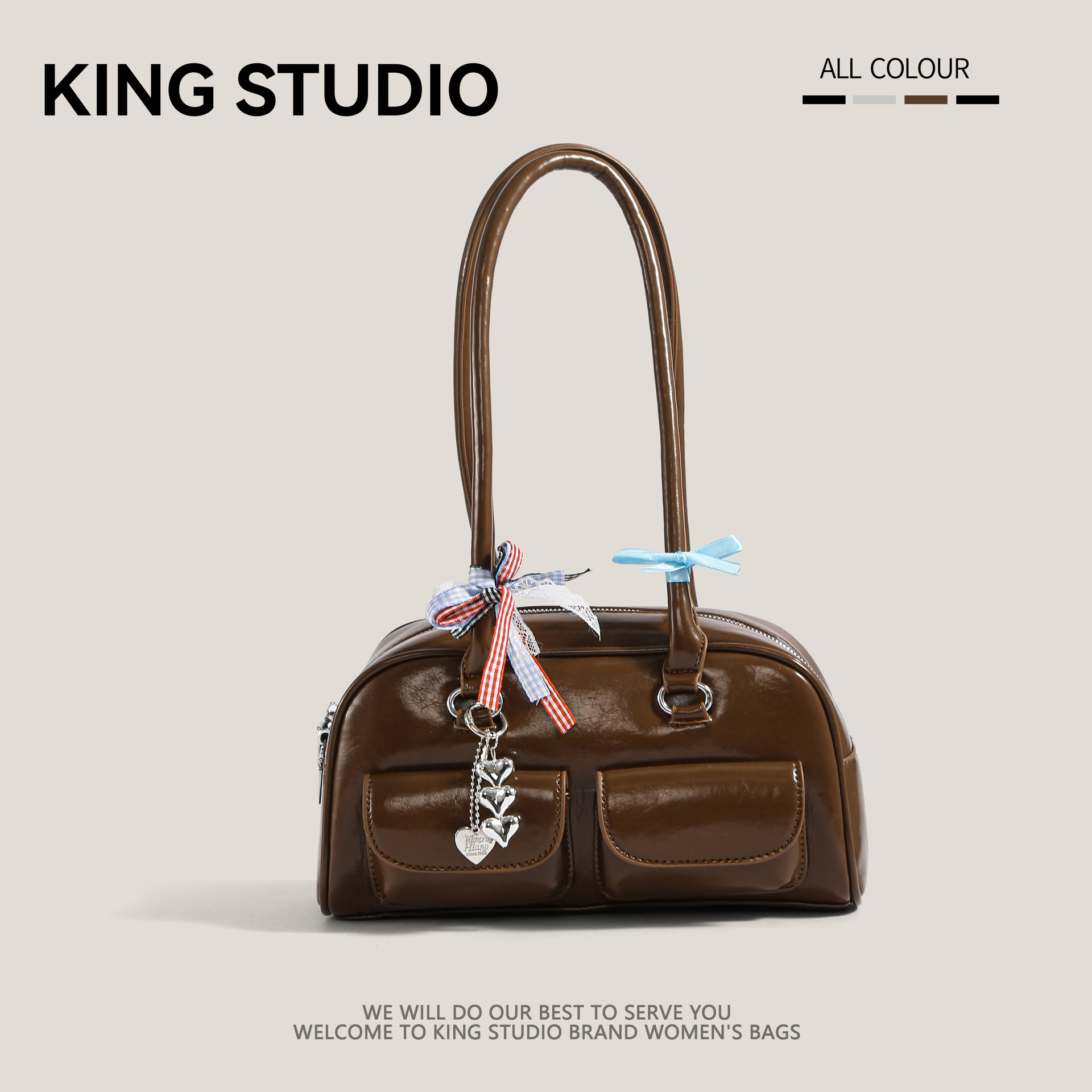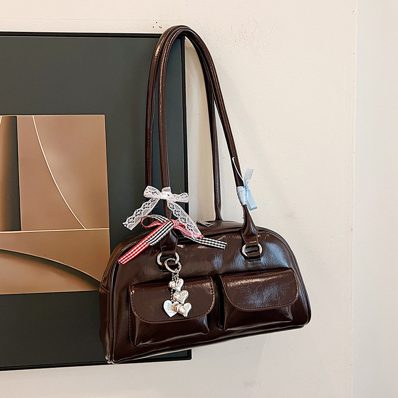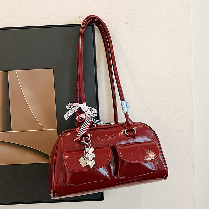 아픈 바늘 Xu Yunzhen 동일 스타일 볼링 백 한국 블로거 니치 올 매치 보스턴 토트 백 언더 암 숄더 백스토어 가기