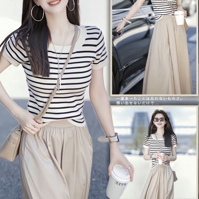높은 패션 높은 감각 작은 원피스 소금 스타일 라이트 성숙한 상단 넓은 다리 바지 투피스 세트 2023 여름스토어 가기
