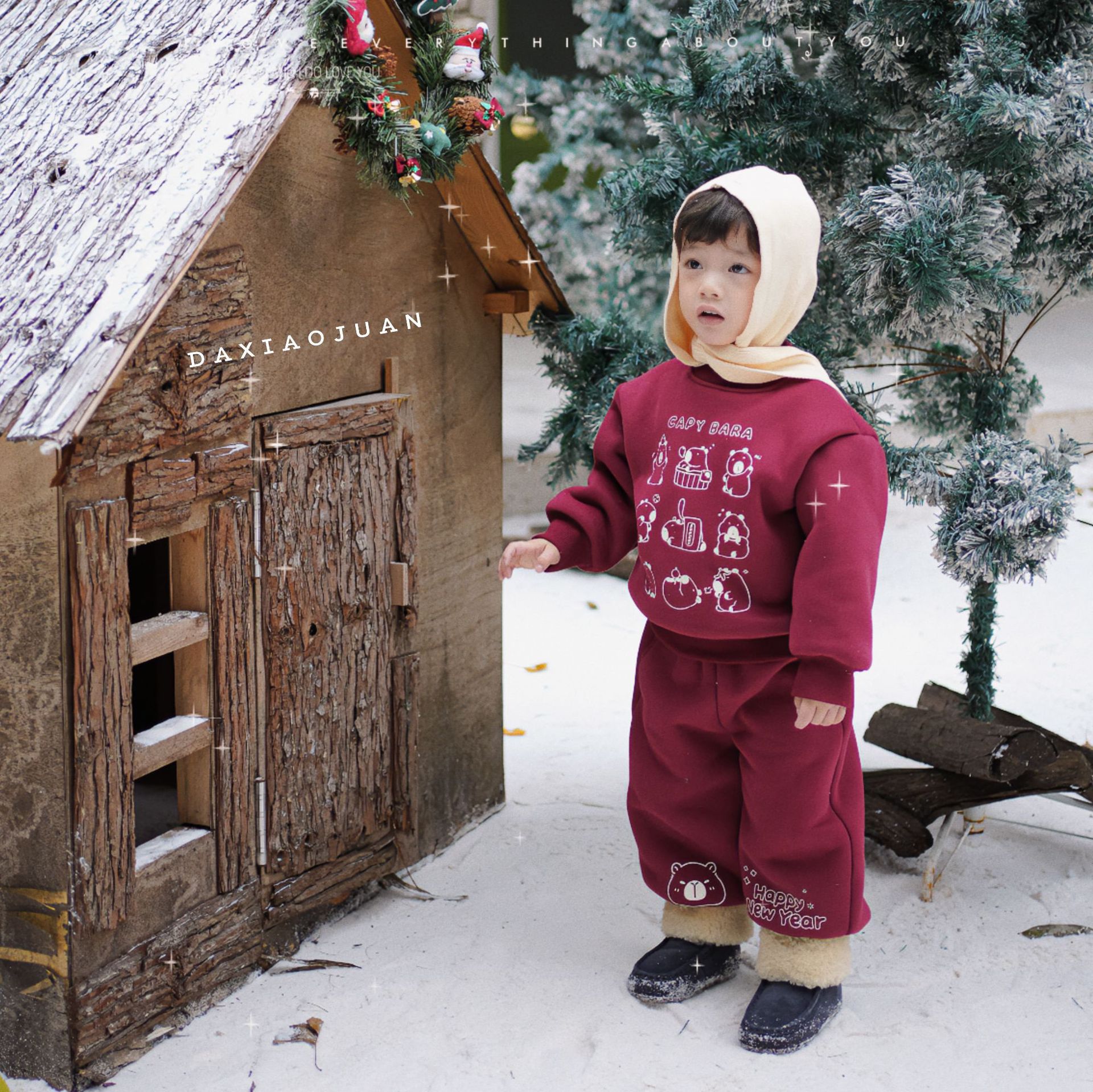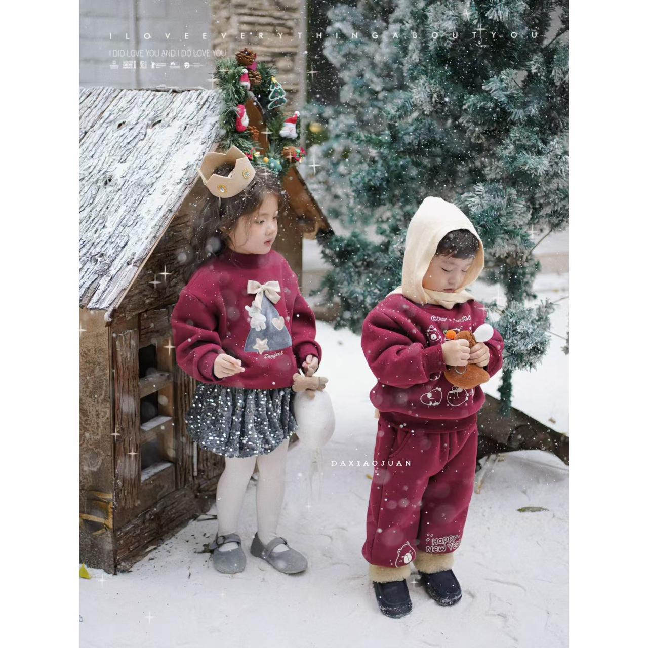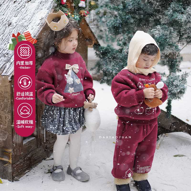 크고 작은 롤 [카피 발라] 겨울 어린이 기모 두꺼운 레저 세트 ~ 인형 보내기-26561