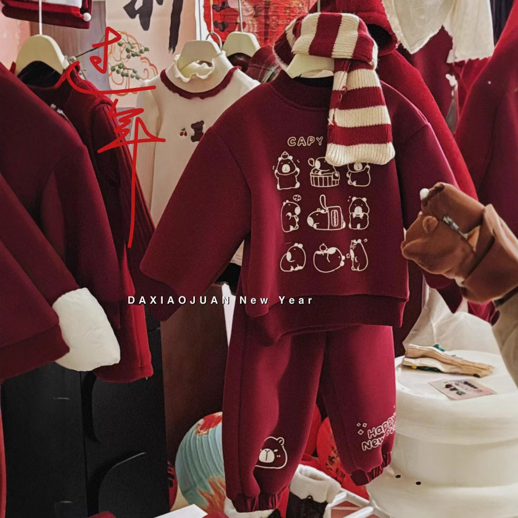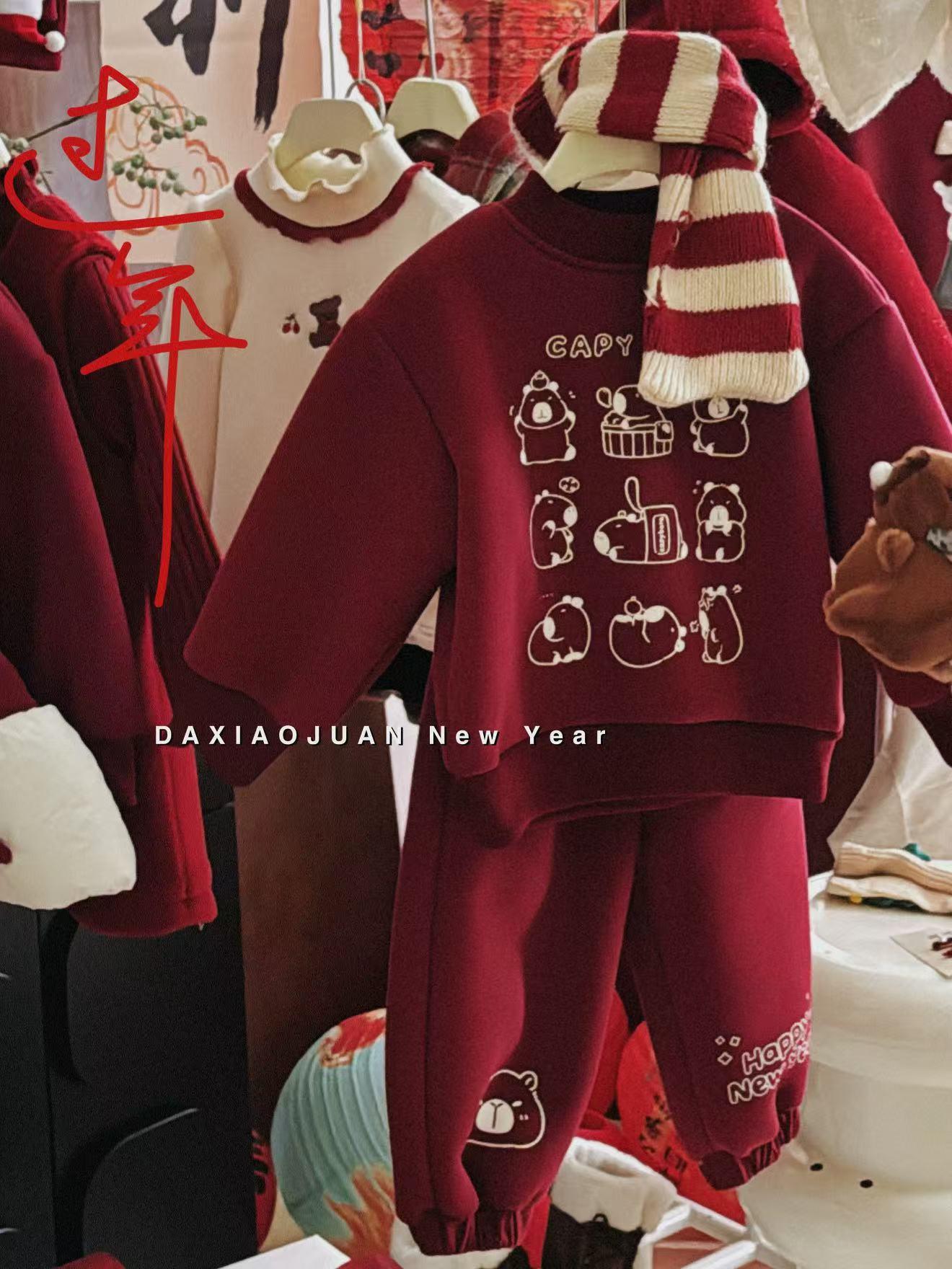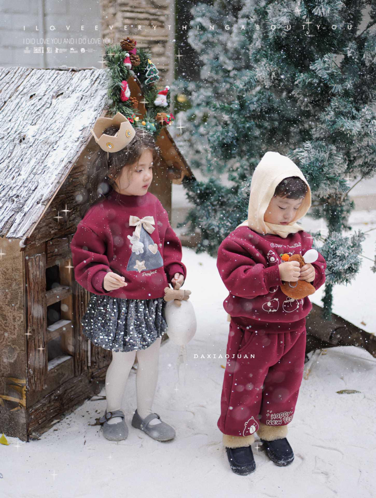 크고 작은 롤 [카피 발라] 겨울 어린이 기모 두꺼운 레저 세트 ~ 인형 보내기-26561