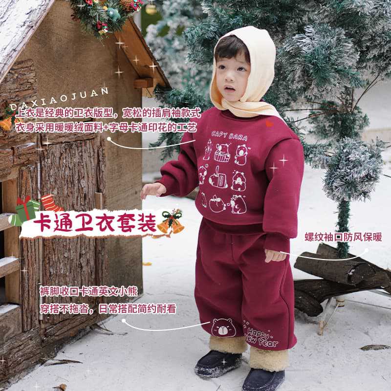 크고 작은 롤 [카피 발라] 겨울 어린이 기모 두꺼운 레저 세트 ~ 인형 보내기-26561스토어 가기