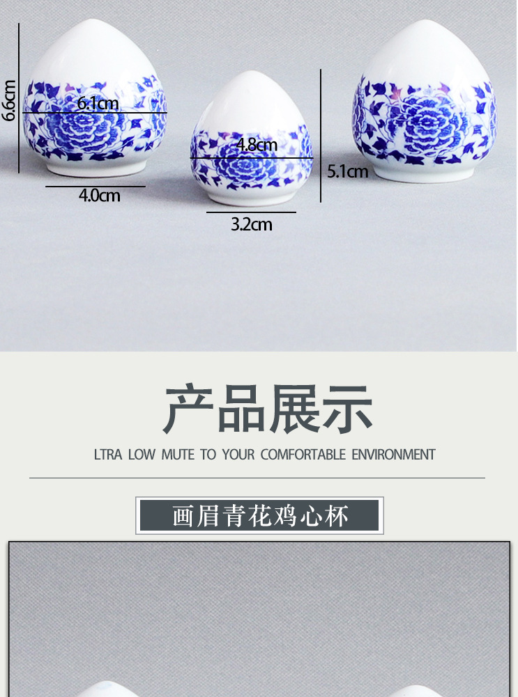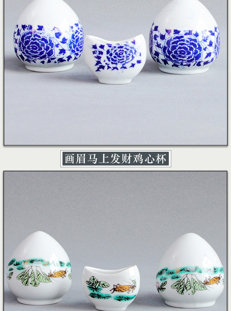 • 그림 눈썹 파란색과 흰색 도자기 치킨 하트 컵 세트 1.8 도자기 손잡이