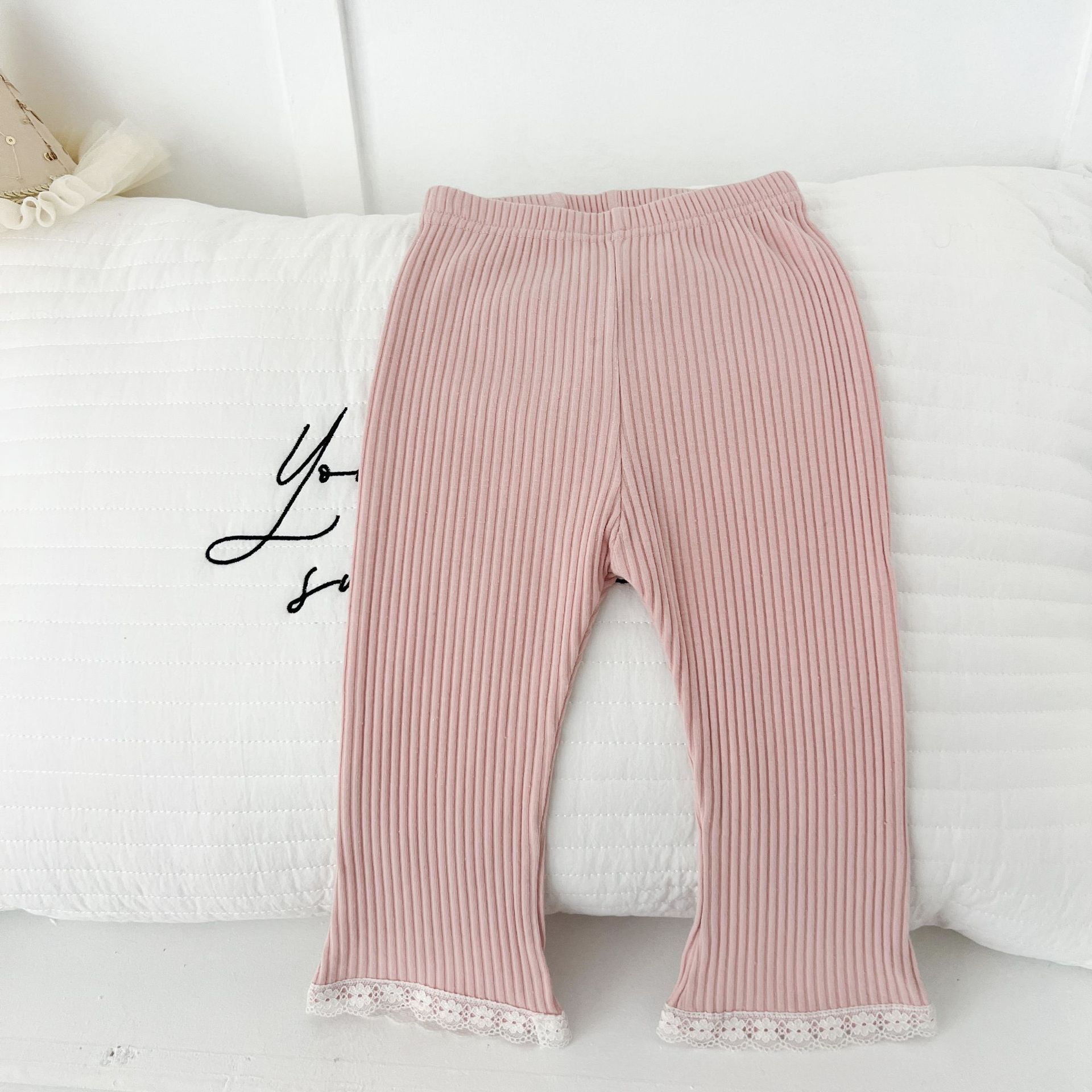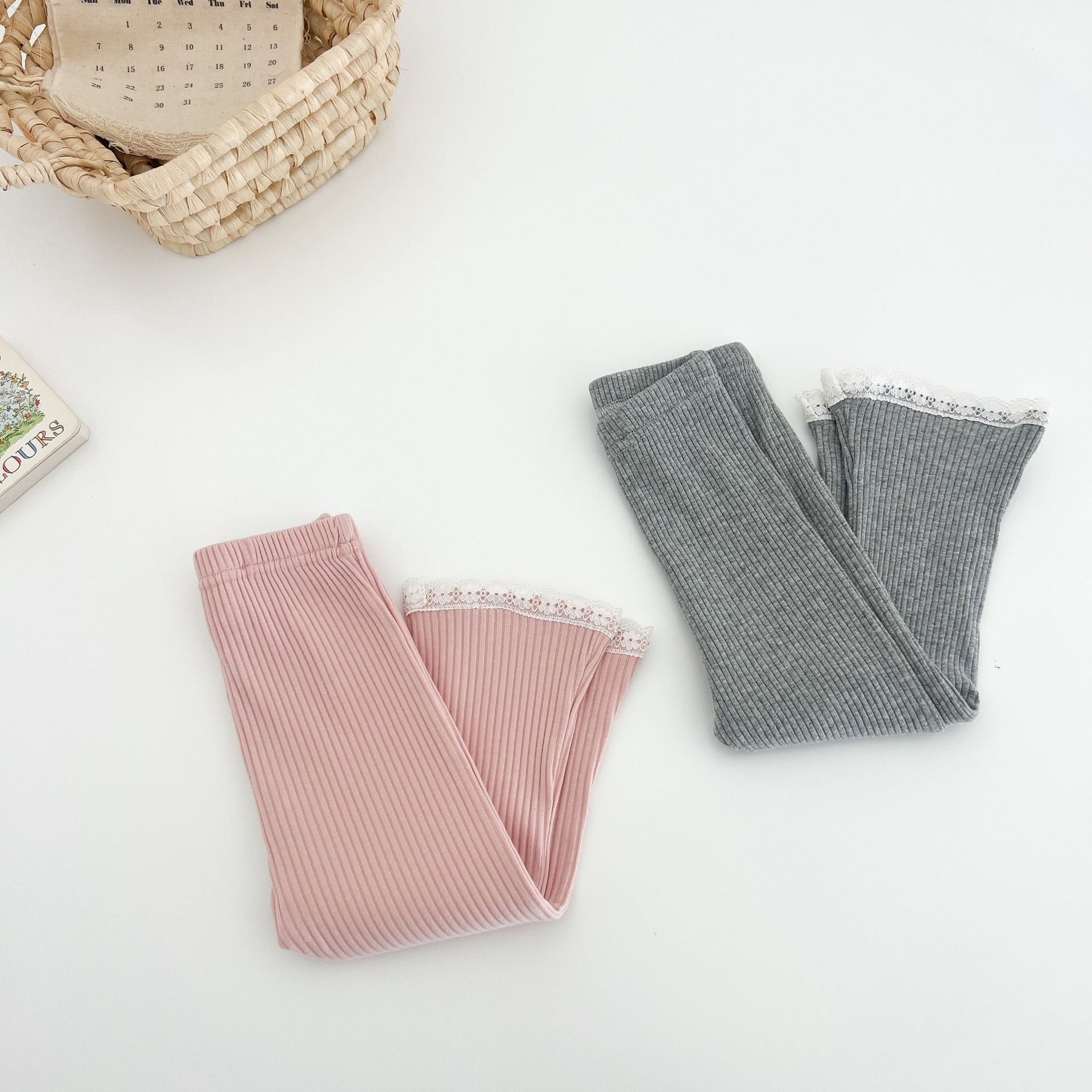 한국식 봄과 가을 중소형 어린이 레이스 레깅스 솔리드 컬러 핏 플래 팬츠 달콤한 아기 소녀 간단한 외출 레깅스
