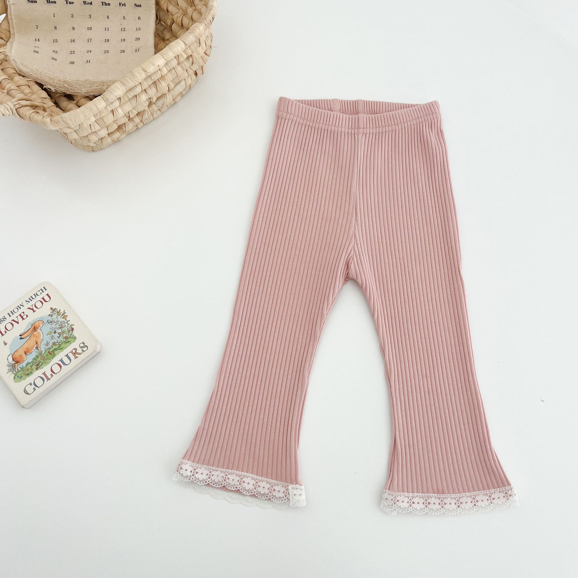 한국식 봄과 가을 중소형 어린이 레이스 레깅스 솔리드 컬러 핏 플래 팬츠 달콤한 아기 소녀 간단한 외출 레깅스스토어 가기