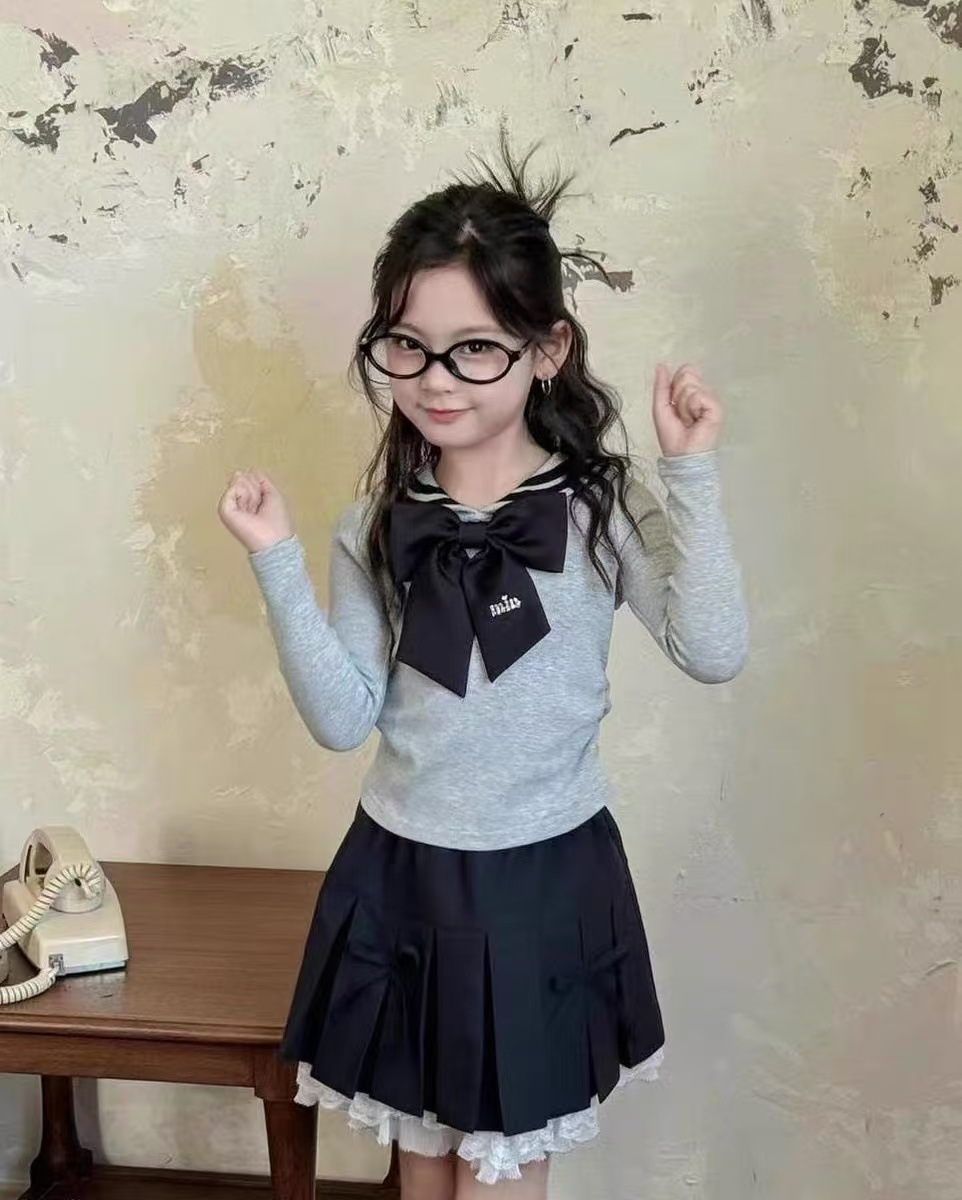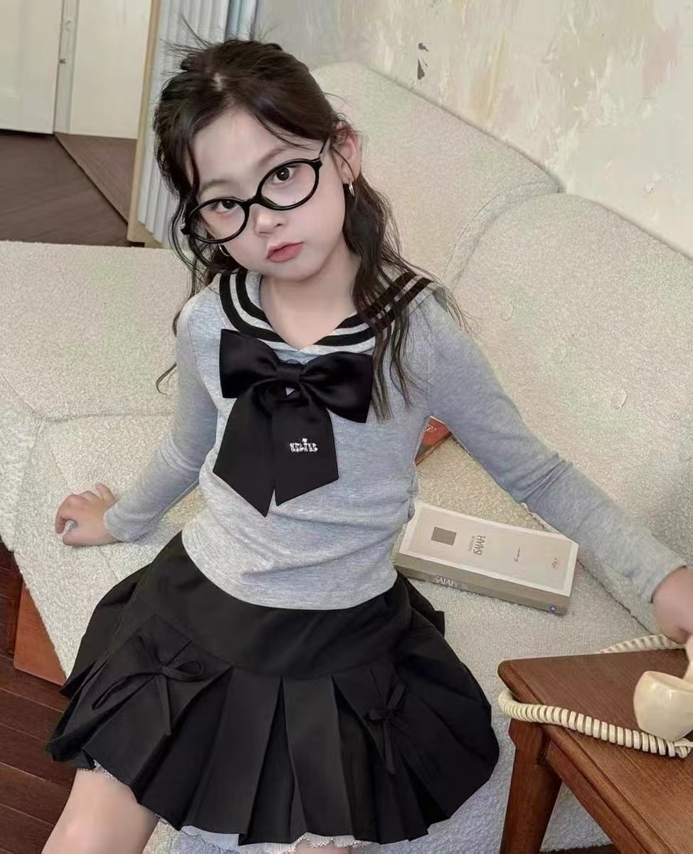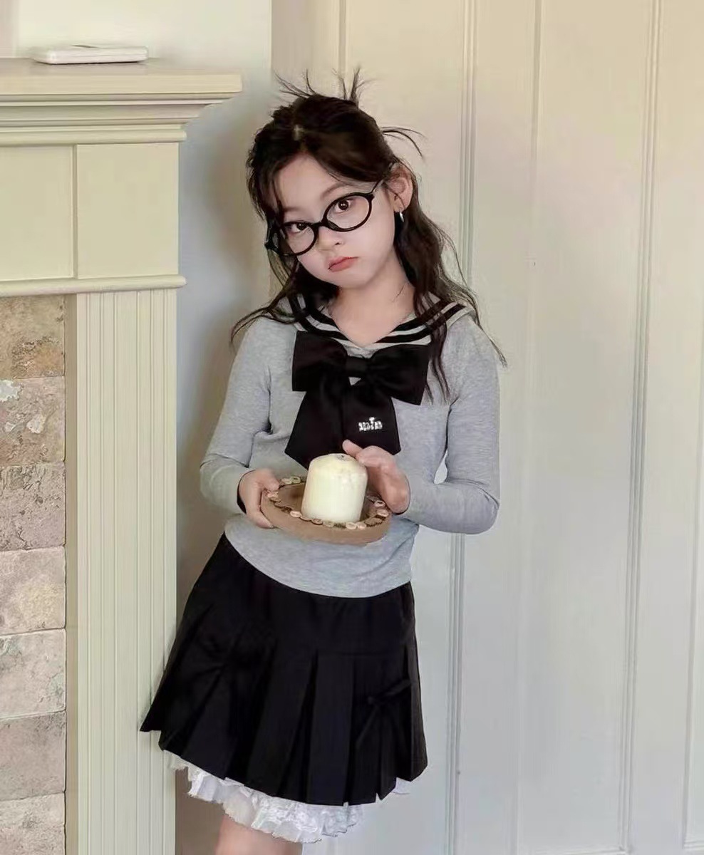 활 여자 치마 가을 2024 새로운 여자 jk 주름 치마 어린이 한국 외국 스타일 가짜 투피스 꽃스토어 가기