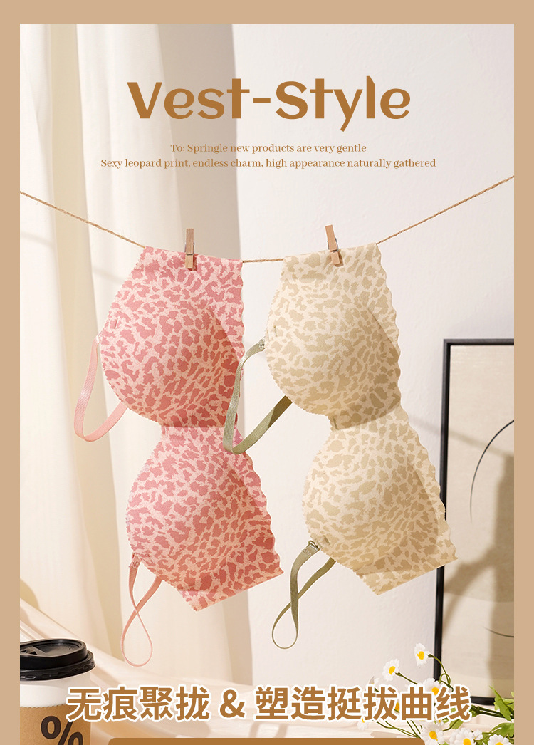 섹시한 레오파드 무늬 속옷 여성의 비 반지 작은 가슴 모임 두꺼운 상단 디스플레이 대형 측면 유방 안티 처짐 브래지어스토어 가기