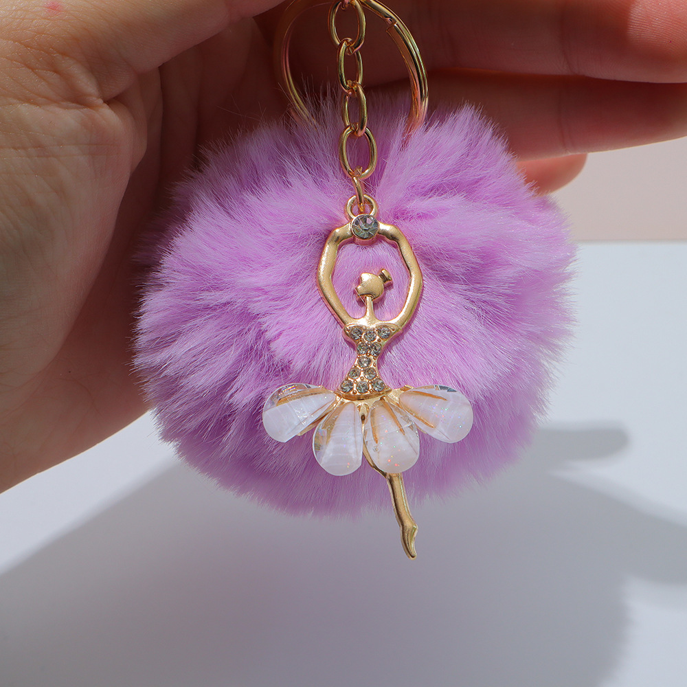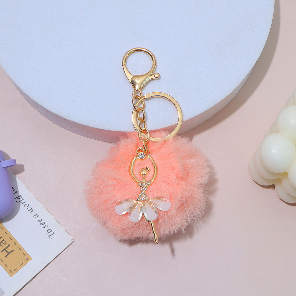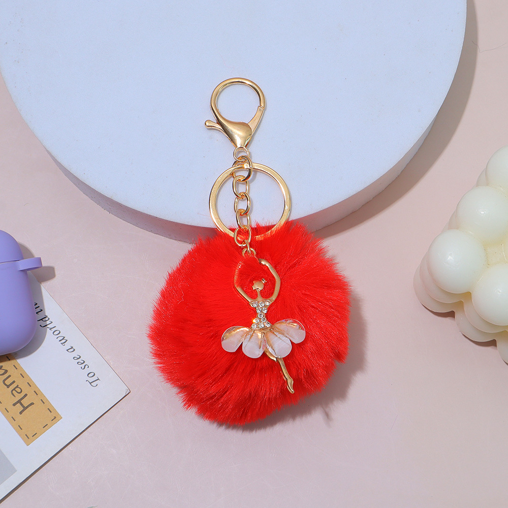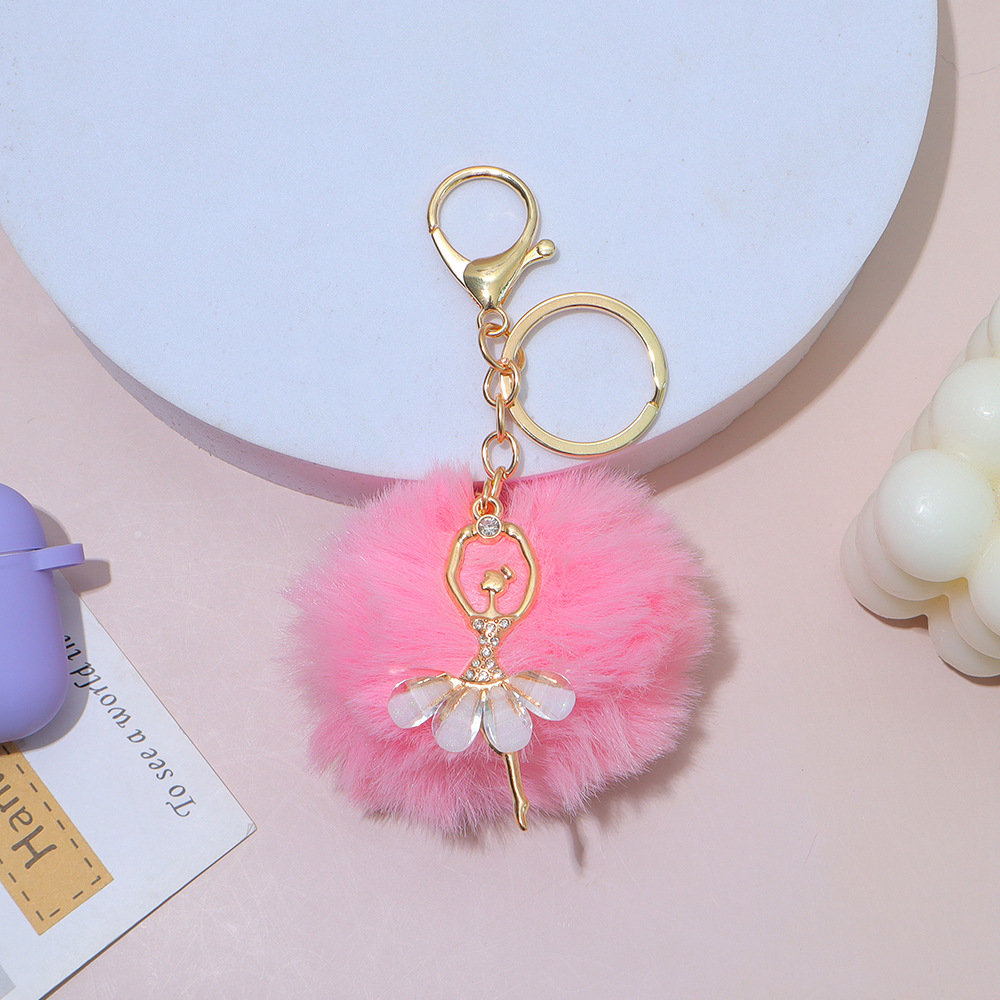 국경 간 모조 다이아몬드 발레 소녀 키 체인 모조 렉스 토끼 모피 공 펜던트 펜던트 소녀 하트 가방 봉제 장식