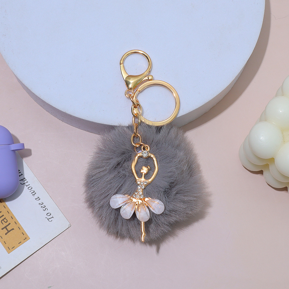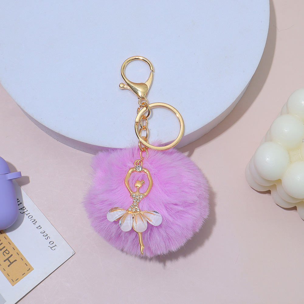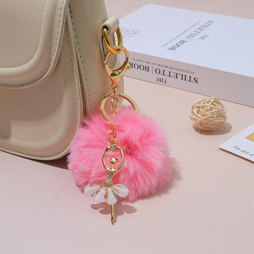 국경 간 모조 다이아몬드 발레 소녀 키 체인 모조 렉스 토끼 모피 공 펜던트 펜던트 소녀 하트 가방 봉제 장식스토어 가기