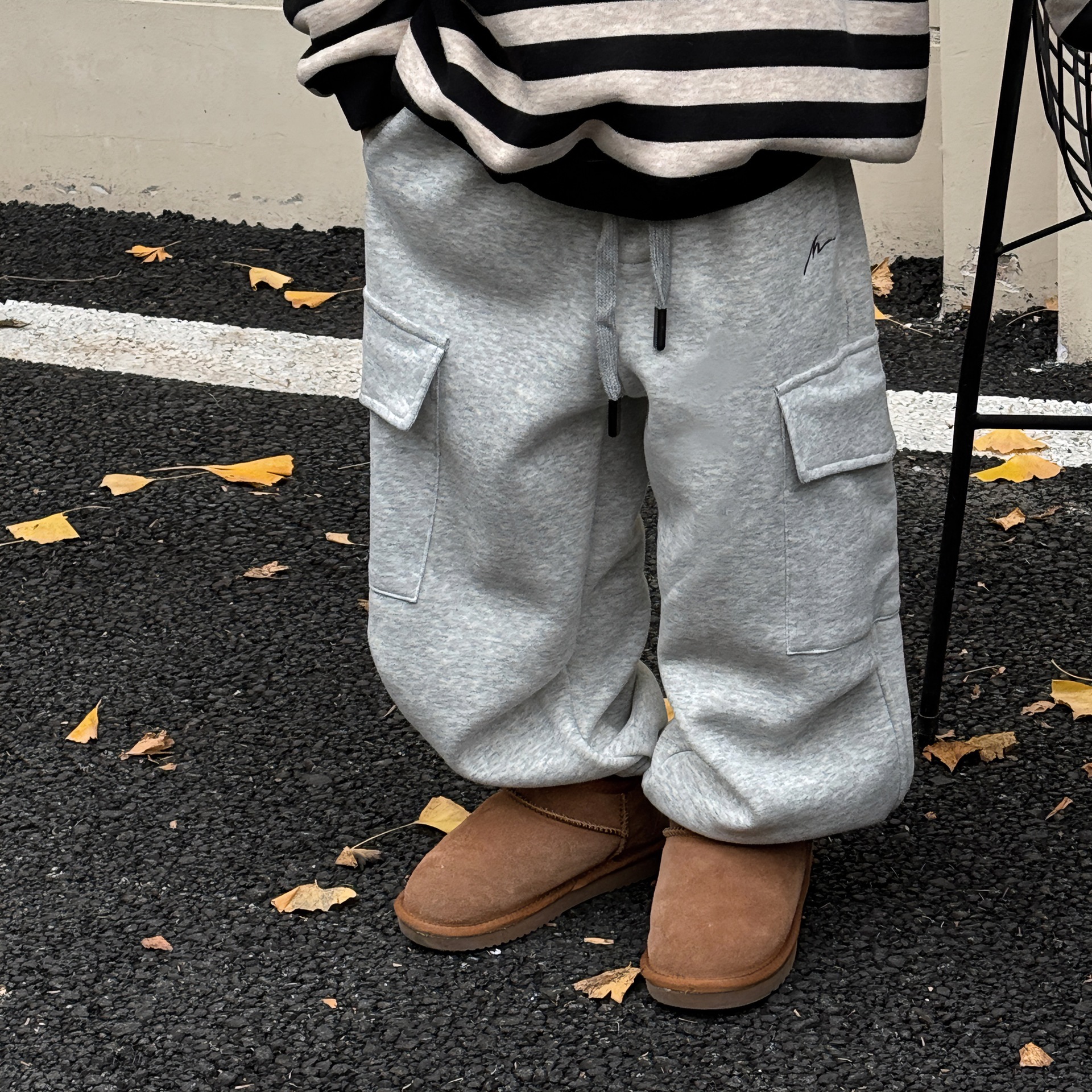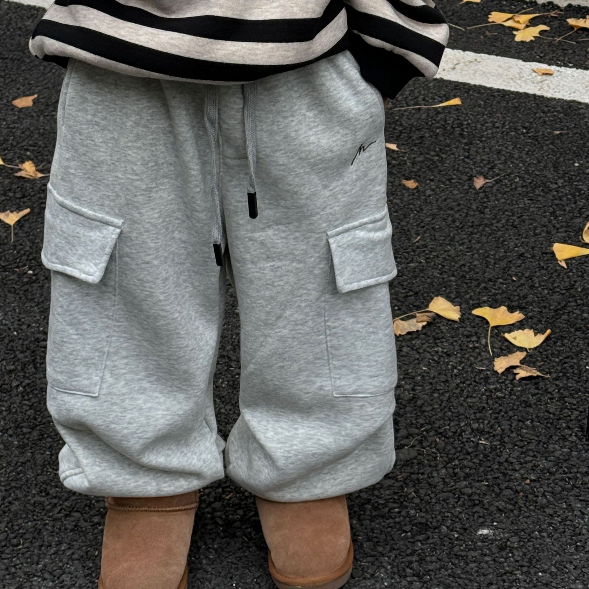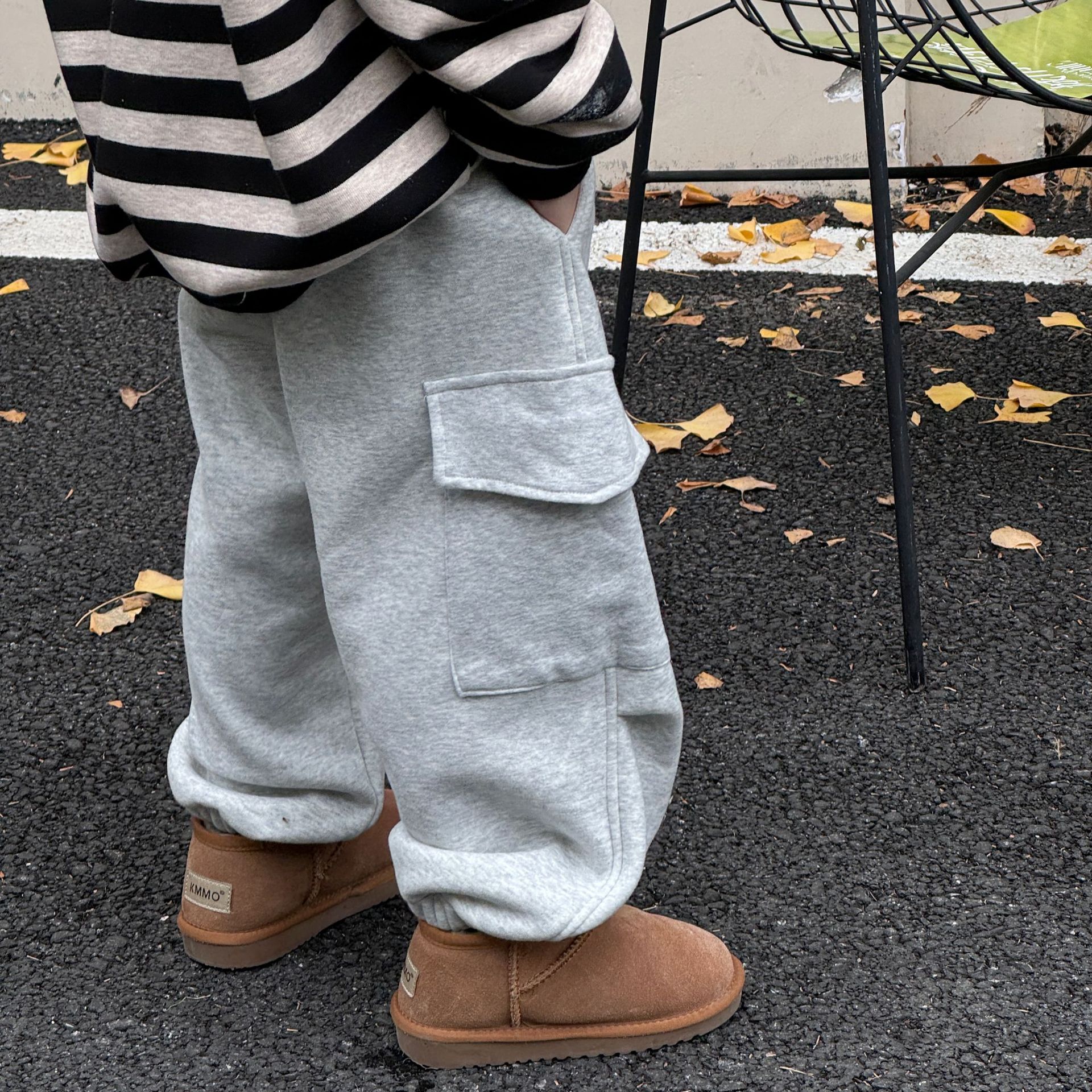 티루 2024 겨울 새 한국식 어린이 올매치 기모 두꺼운 작업복 캐주얼 스웨트 팬츠 보이즈 따뜻한 바지 트렌디스토어 가기
