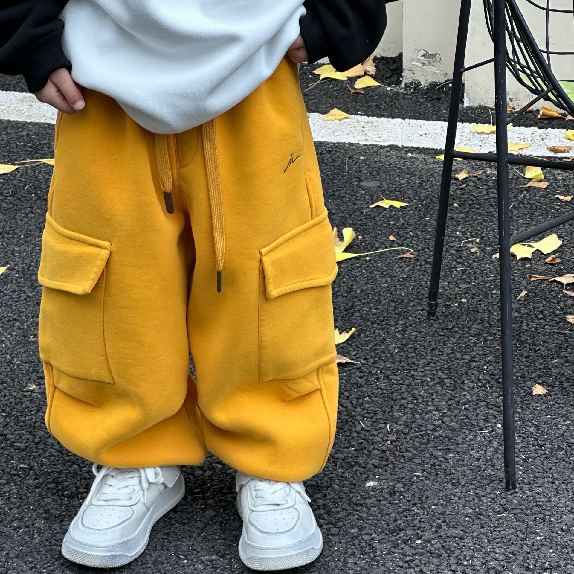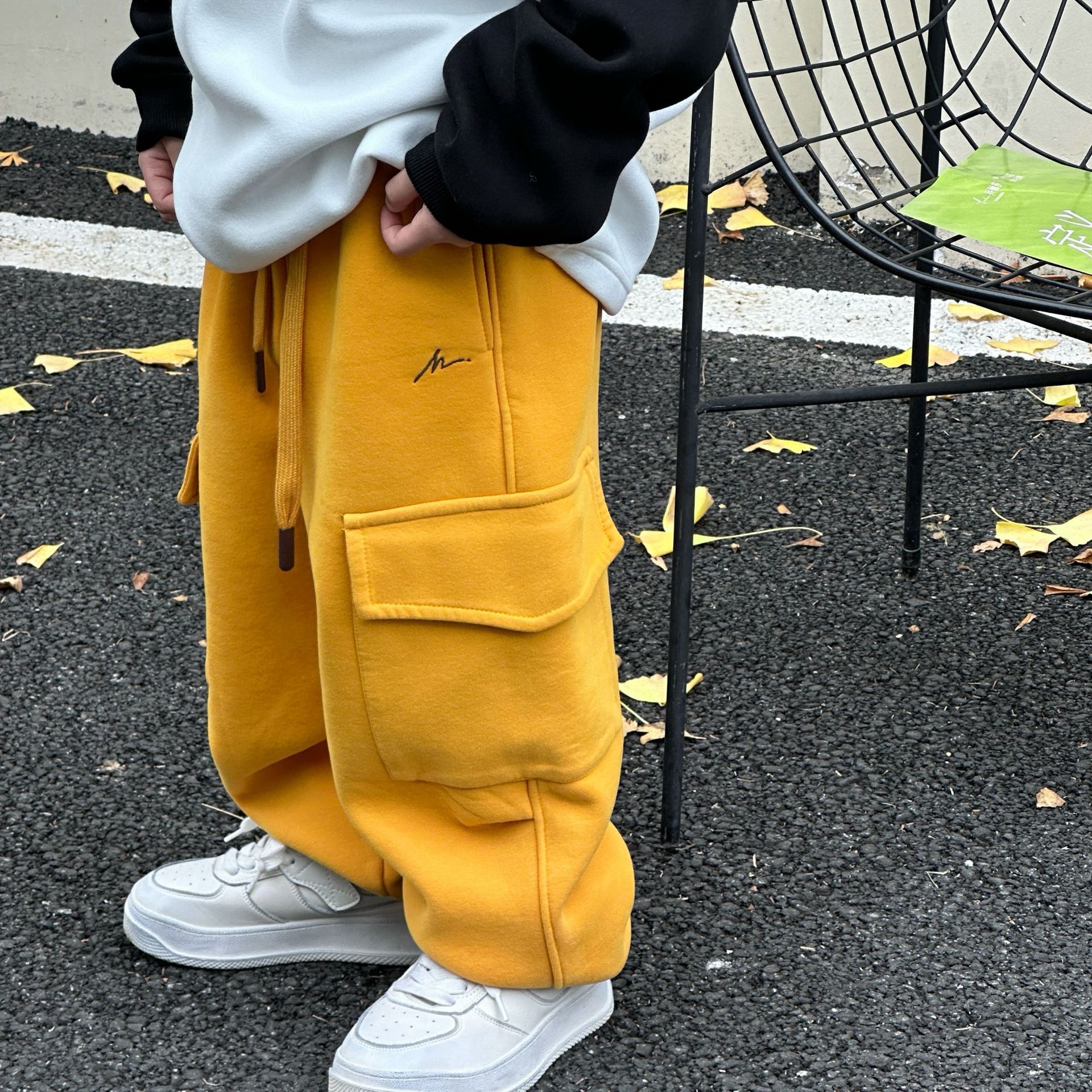 티루 2024 겨울 새 한국식 어린이 올매치 기모 두꺼운 작업복 캐주얼 스웨트 팬츠 보이즈 따뜻한 바지 트렌디