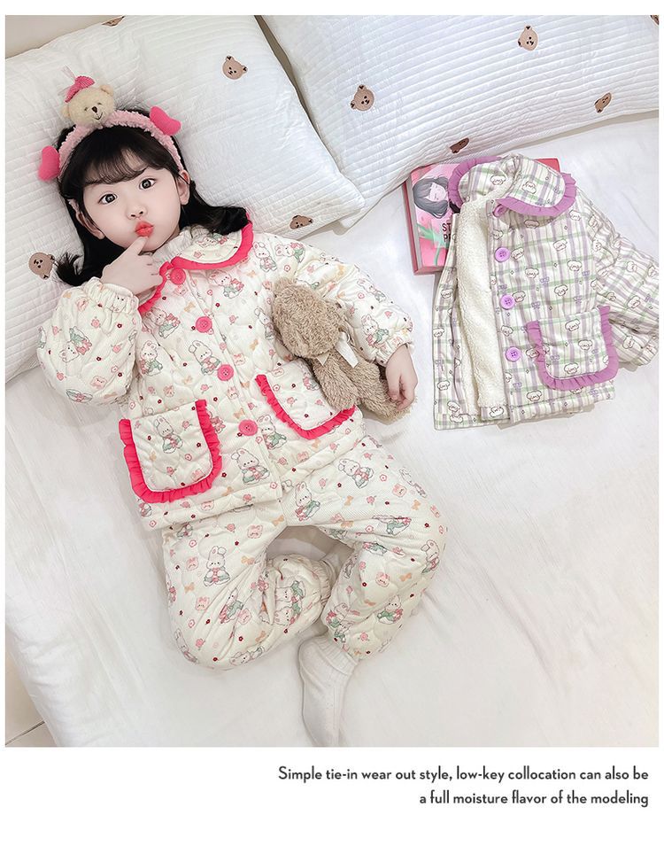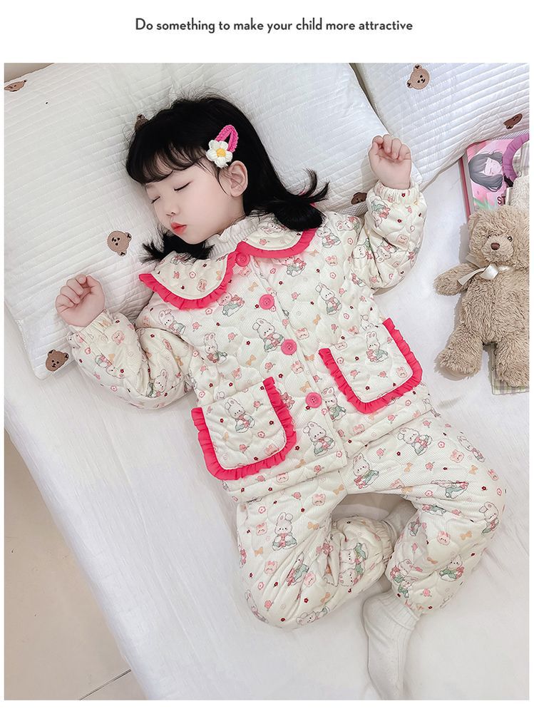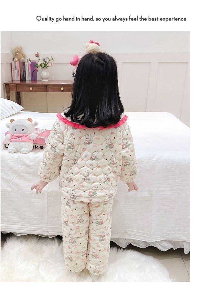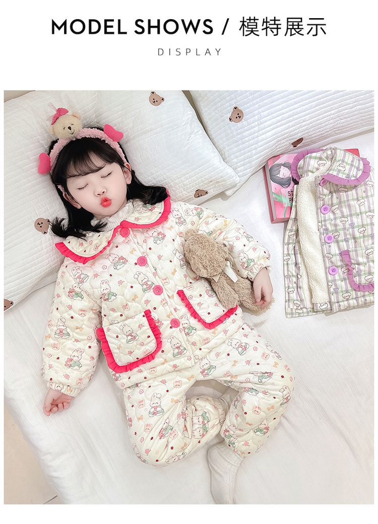 소녀 3 층 퀼트 파자마 2024 새로운 어린이 두꺼운 홈 옷 아기 소녀의 집 따뜻한 세트스토어 가기
