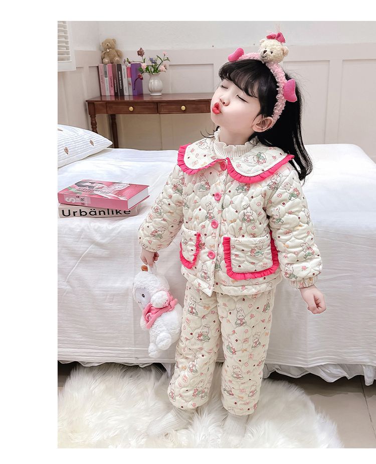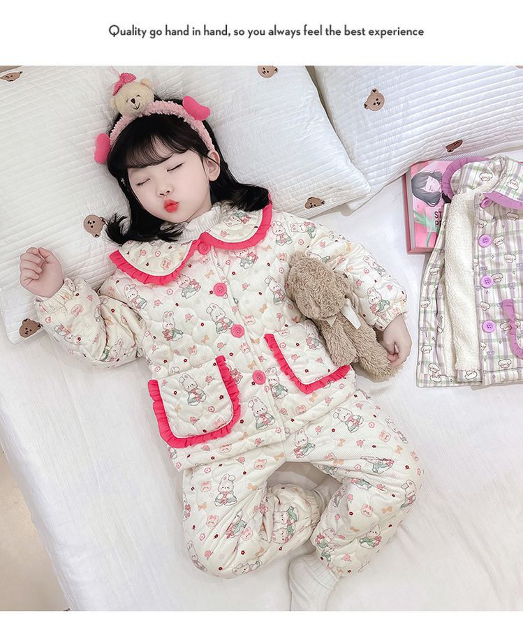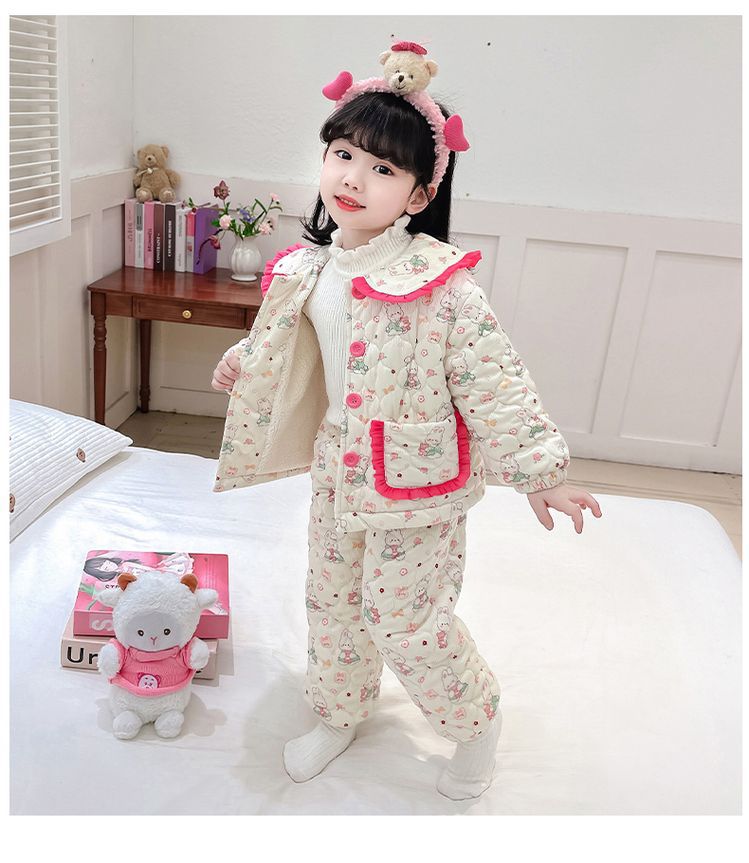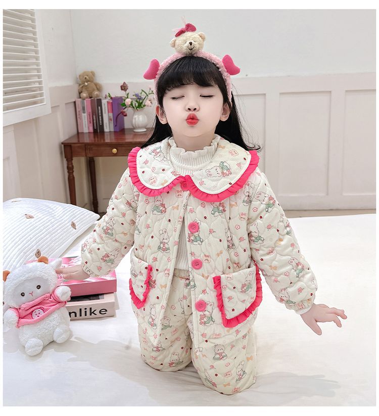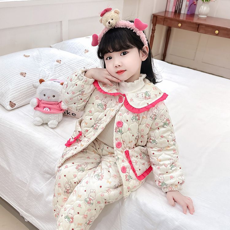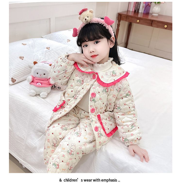 소녀 3 층 퀼트 파자마 2024 새로운 어린이 두꺼운 홈 옷 아기 소녀의 집 따뜻한 세트