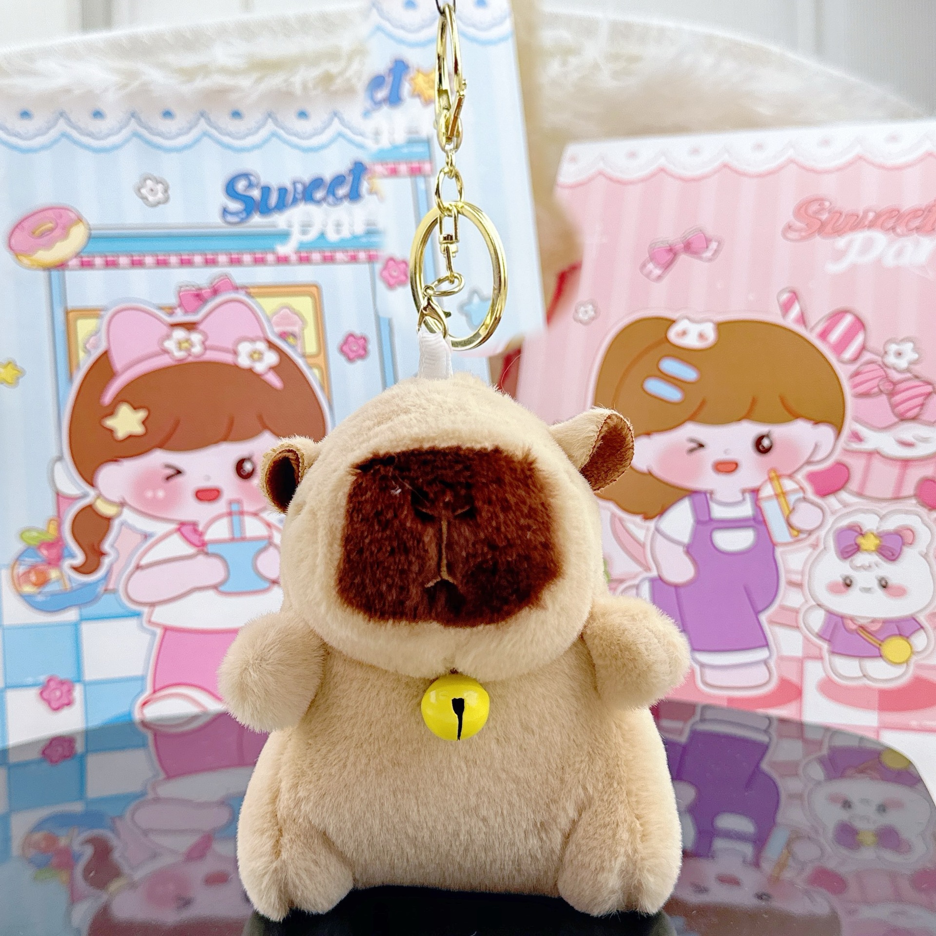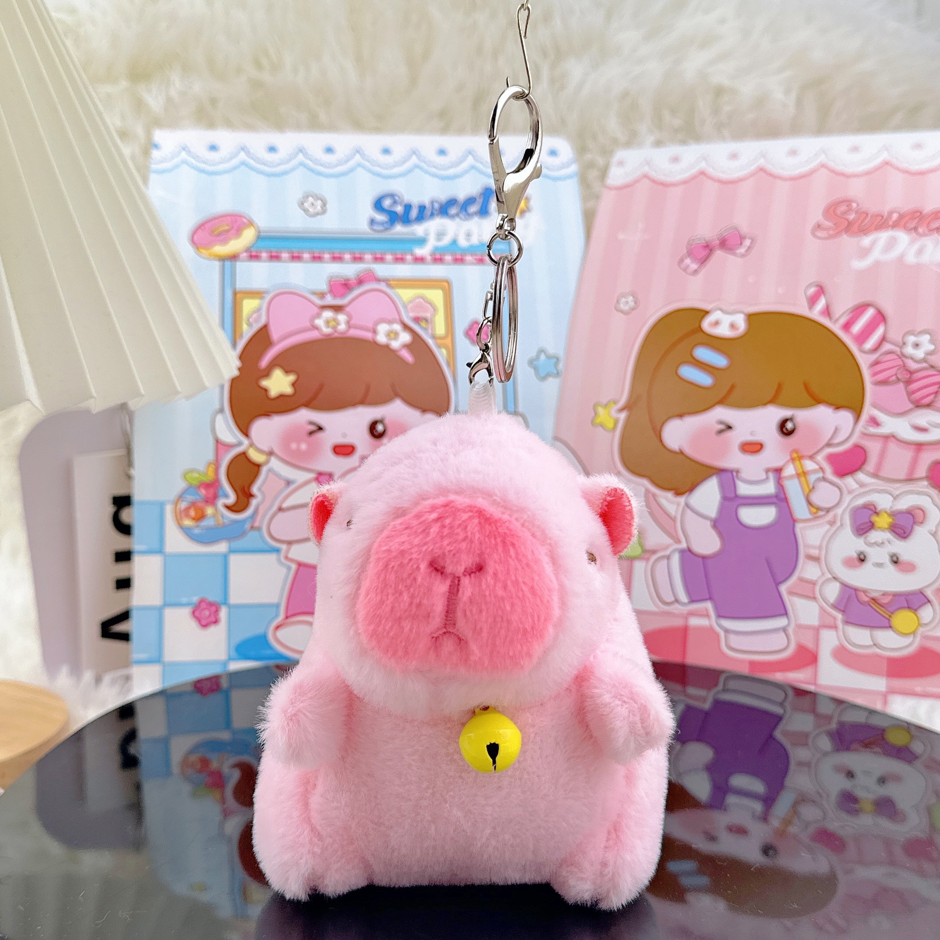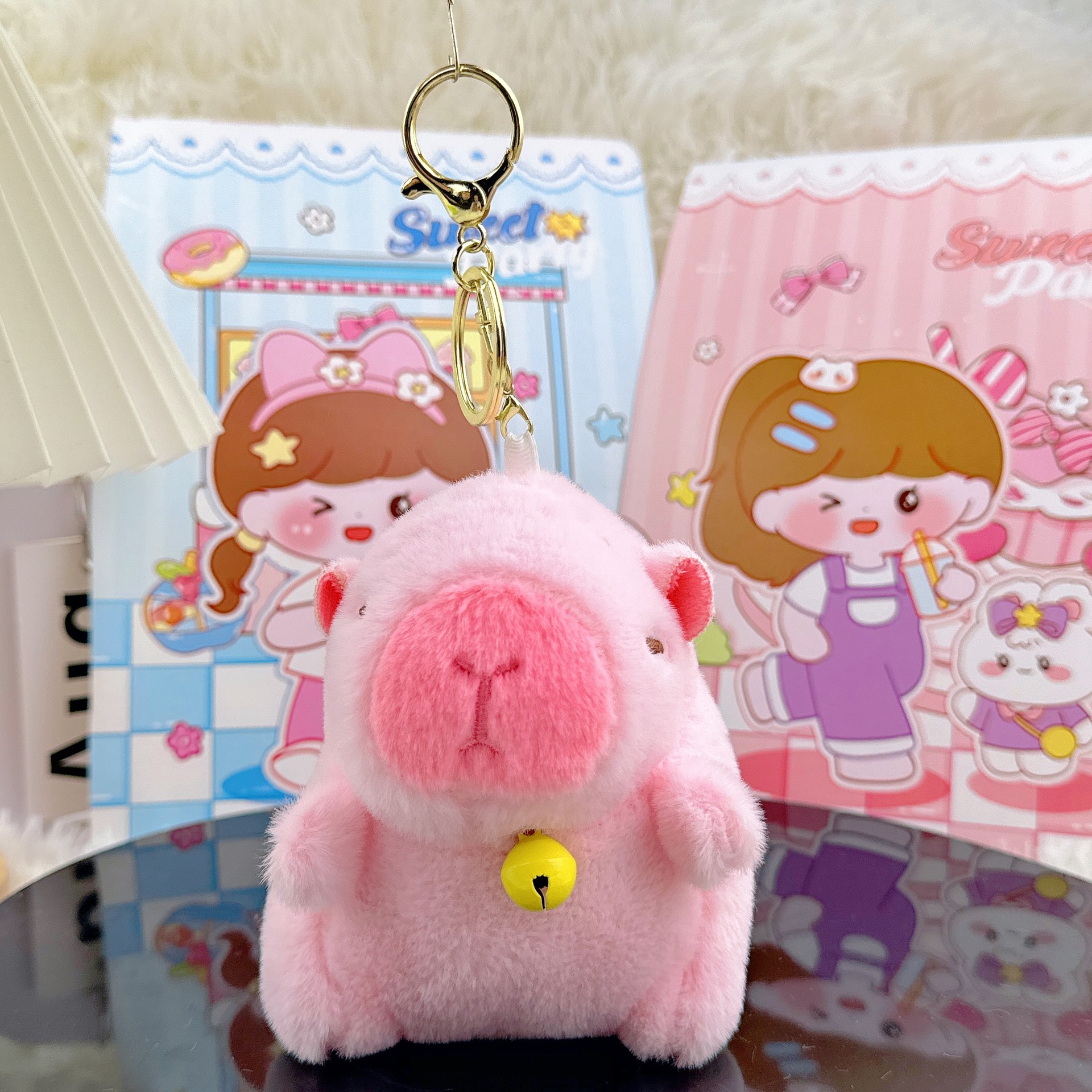 폭발성 기니 돼지 인형 학교 가방 펜던트 작은 보석 봉제 벨 카피 발라 카피 바라 인형 열쇠 고리