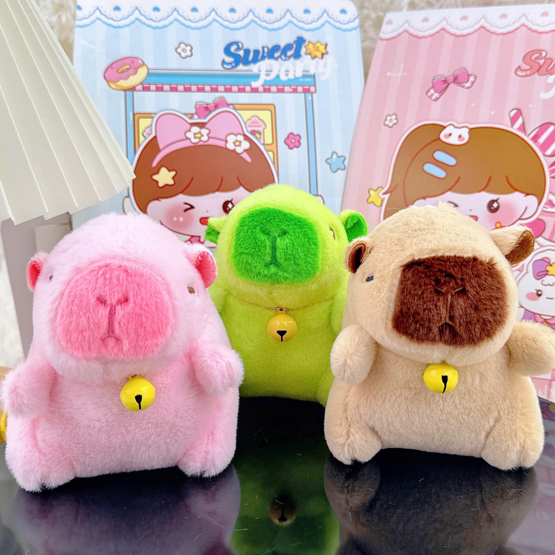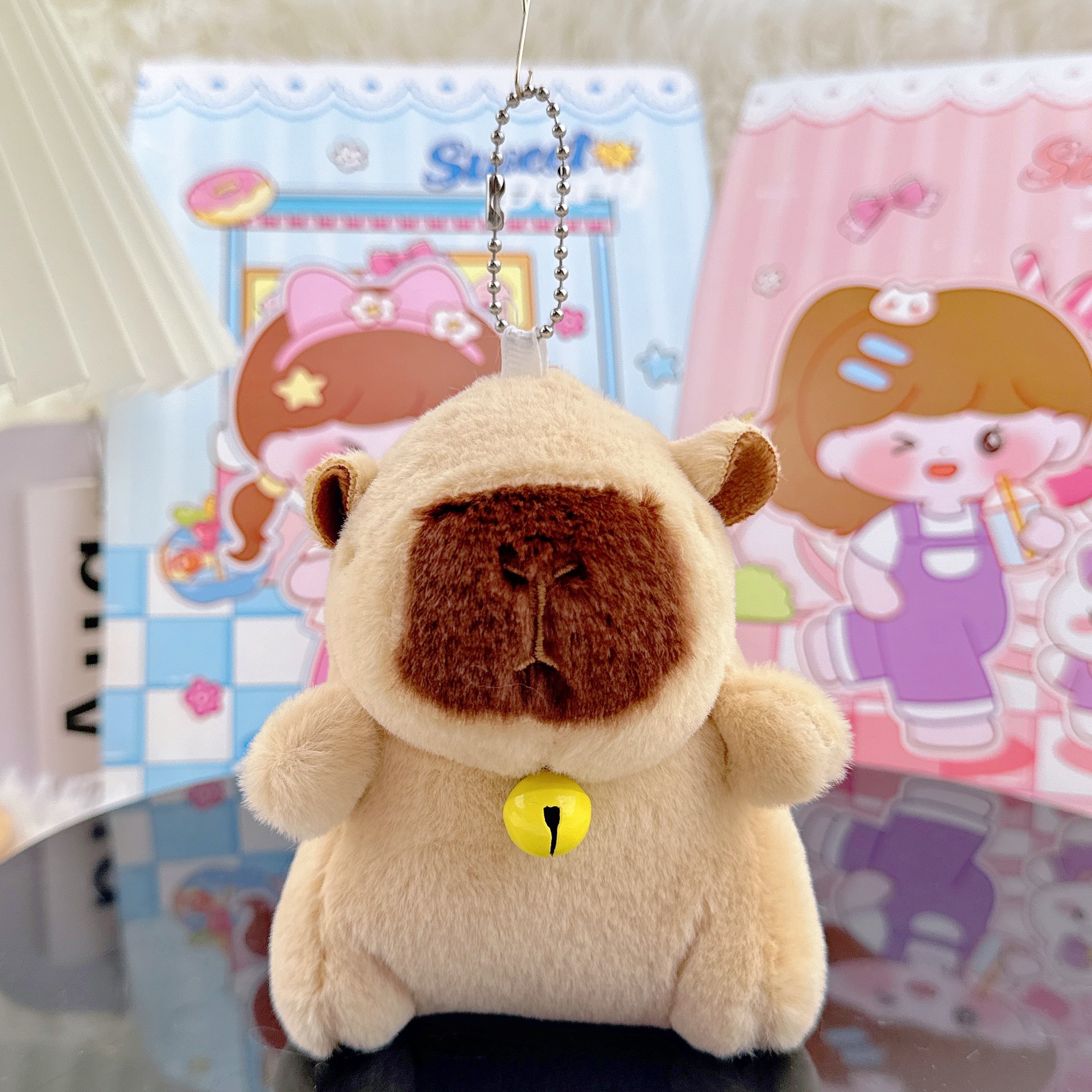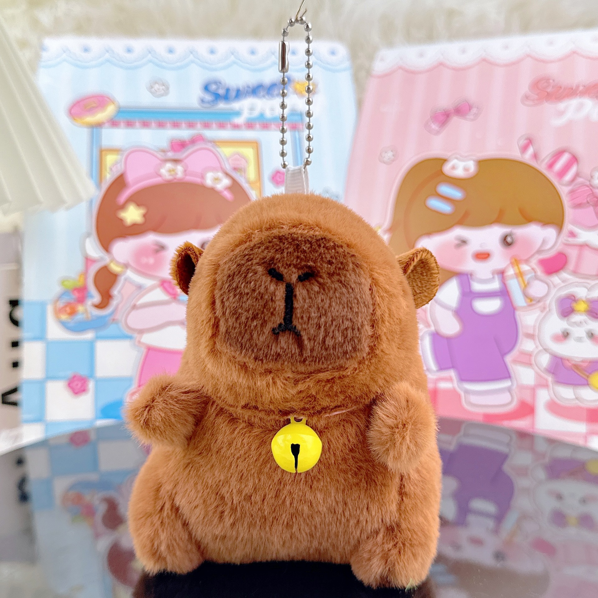 폭발성 기니 돼지 인형 학교 가방 펜던트 작은 보석 봉제 벨 카피 발라 카피 바라 인형 열쇠 고리
