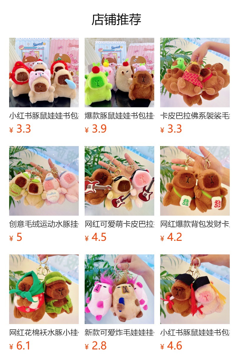 폭발성 기니 돼지 인형 학교 가방 펜던트 작은 보석 봉제 벨 카피 발라 카피 바라 인형 열쇠 고리스토어 가기