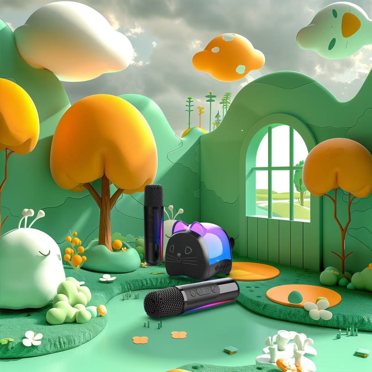 블루투스 오디오 마이크 통합 마이크 만화 스피커 K-노래 국경 무선 소형 어린이 무선 서브 우퍼