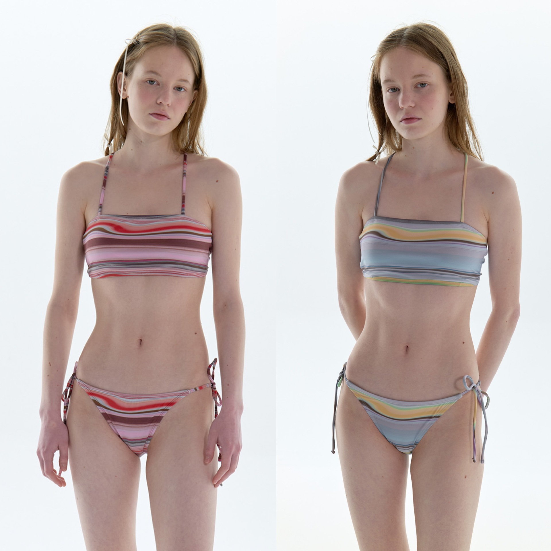 새로운 한국식 수영복 여성 작은 가슴 튜브 탑 복고풍 줄무늬 분할 삼각형 섹시한 테더 비키니 스파 수영복스토어 가기