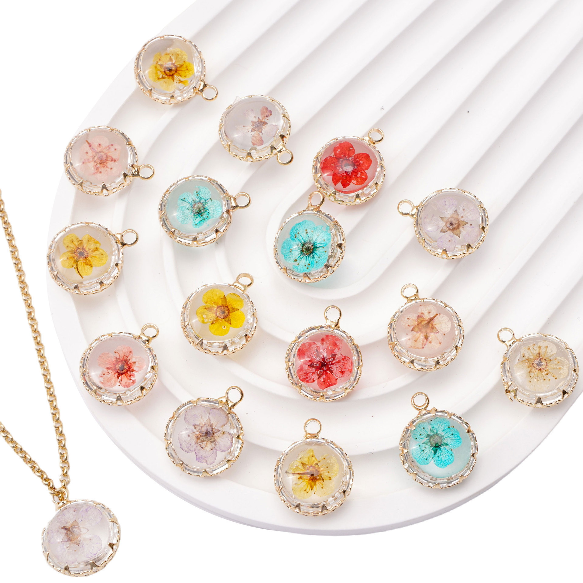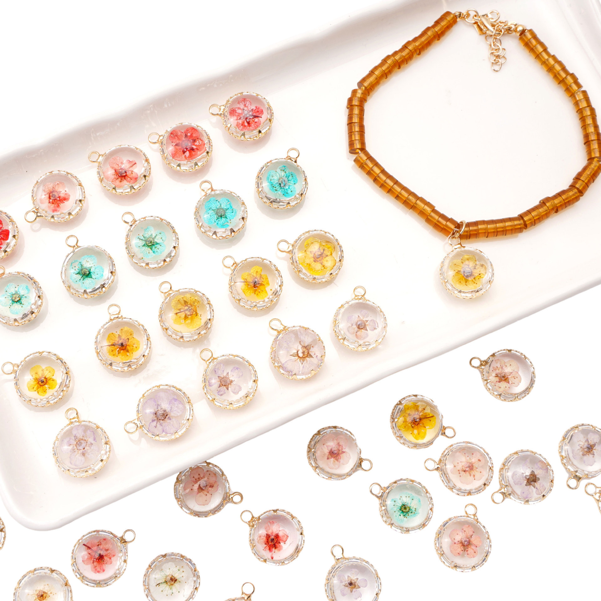 구리 18K 금도금 테두리 드라이플라워 펜던트 수제 DIY 액세서리 목걸이 팔찌 장식 재료 비즈
