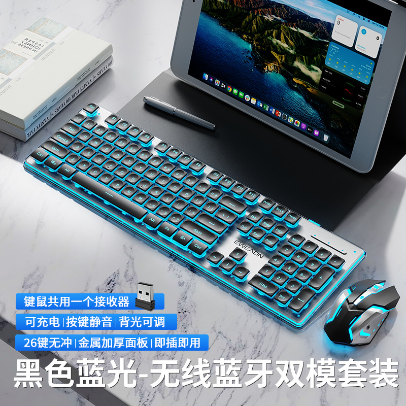 • [무선 블루투스 듀얼 모드] Haoyue Silver-Blu-ray 키보드 + 마우스