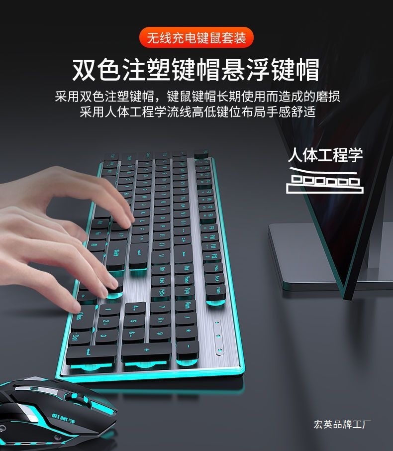새로운 무선 간단한 기계적 느낌 키보드 및 마우스 세트 충전 음소거 방수 키보드 및 마우스 노트북