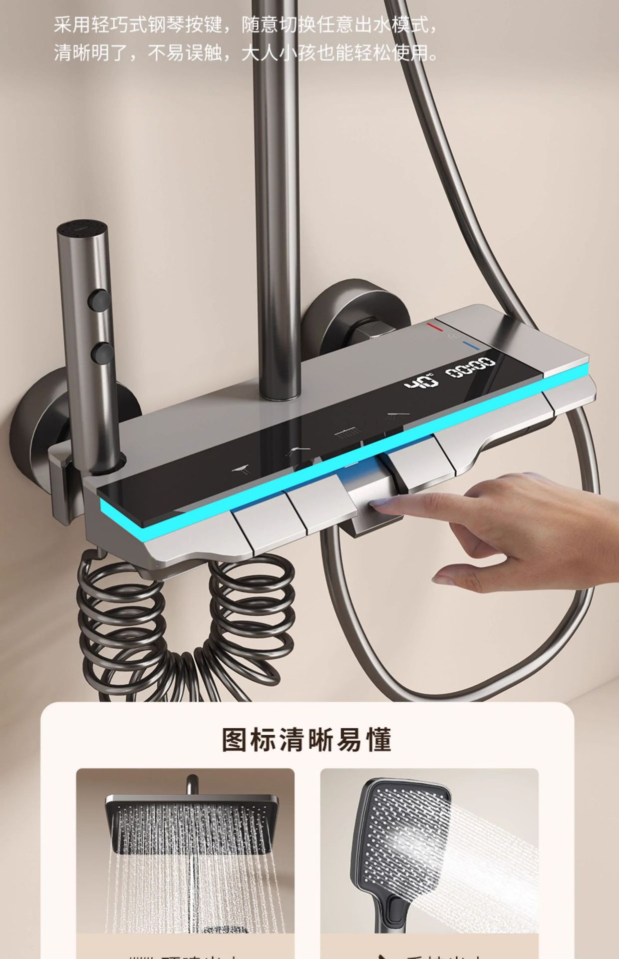 • [럭셔리형] 주변광 PVD 수도금(건그레이) 냉온버전