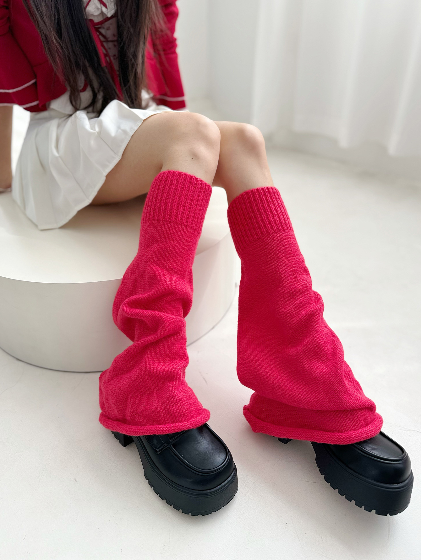 스파이스 걸 미드 튜브 양말 가을과 겨울 새로운 올 매치 니트 스태킹 양말 다리 스위트 양말 플라 드 잭 양말스토어 가기