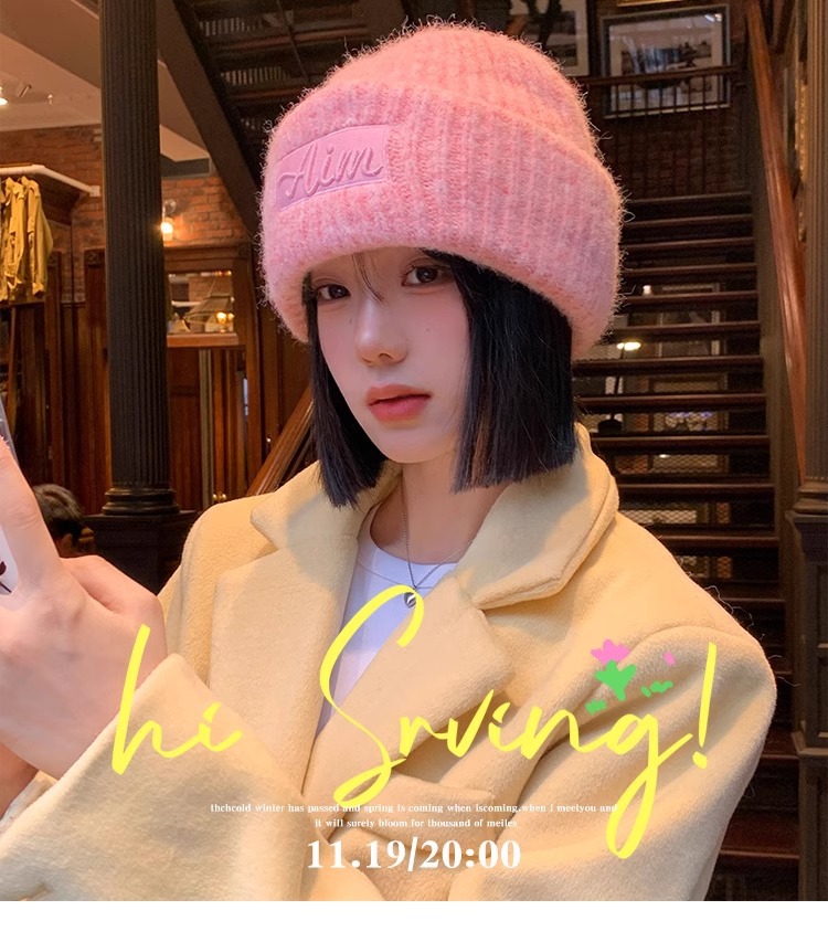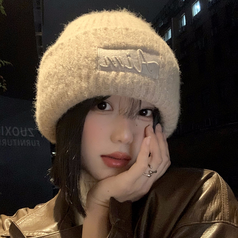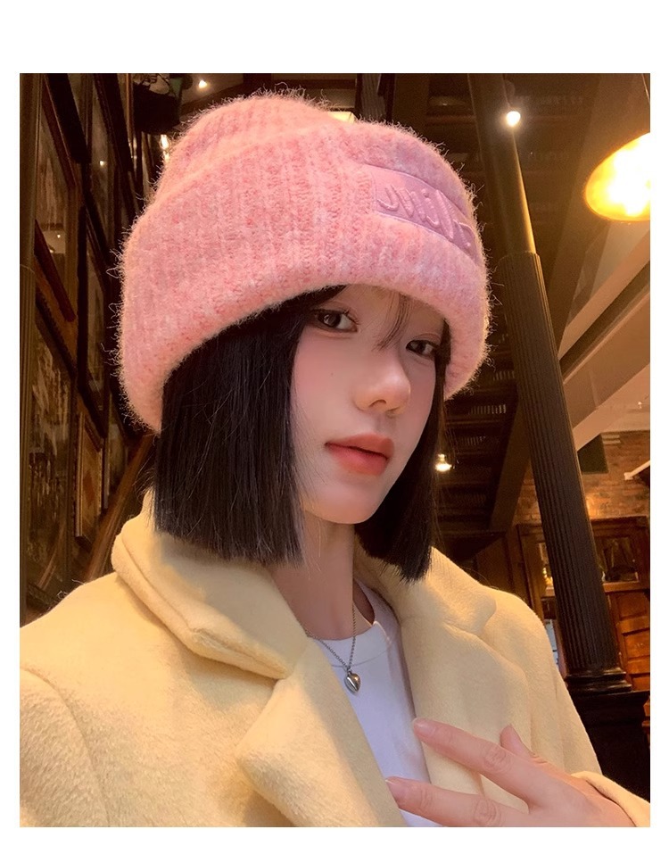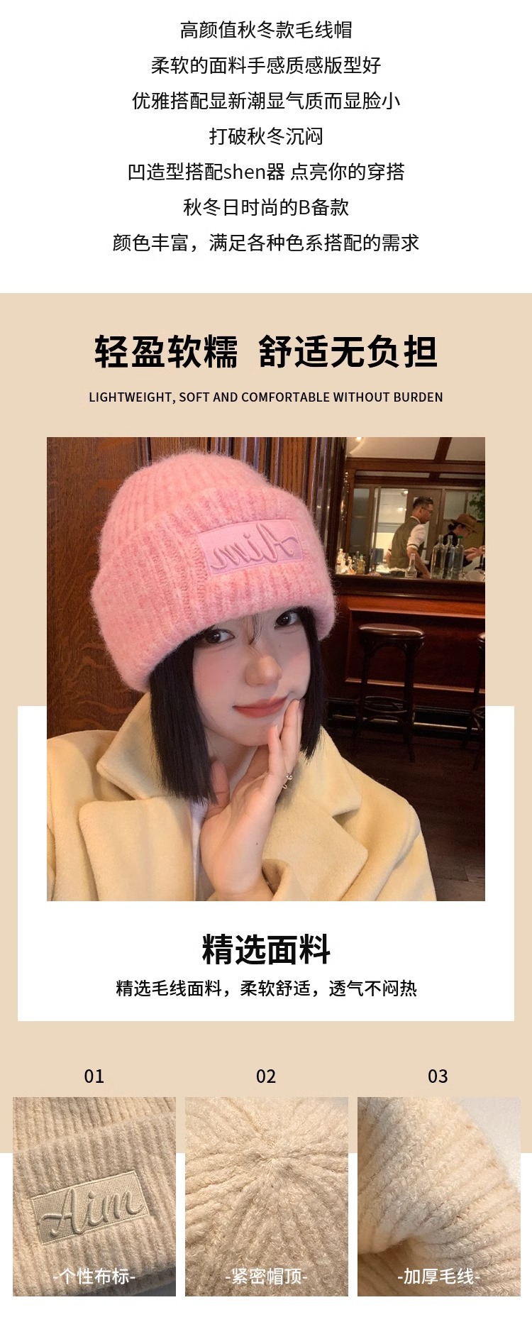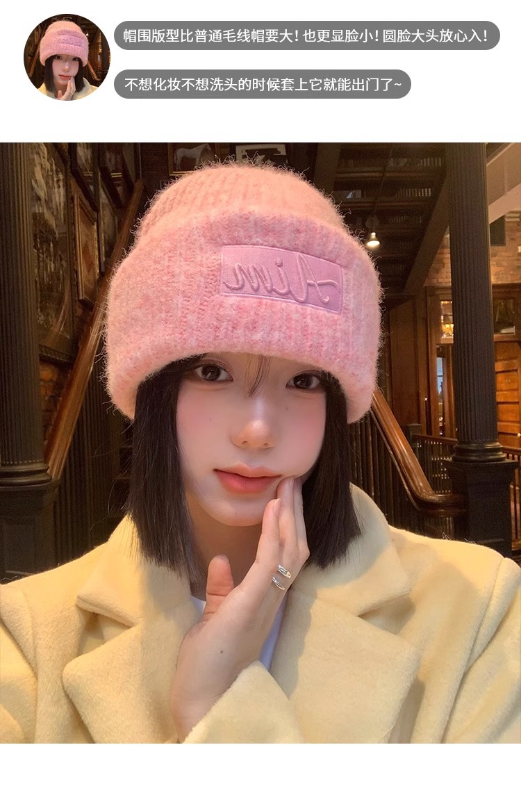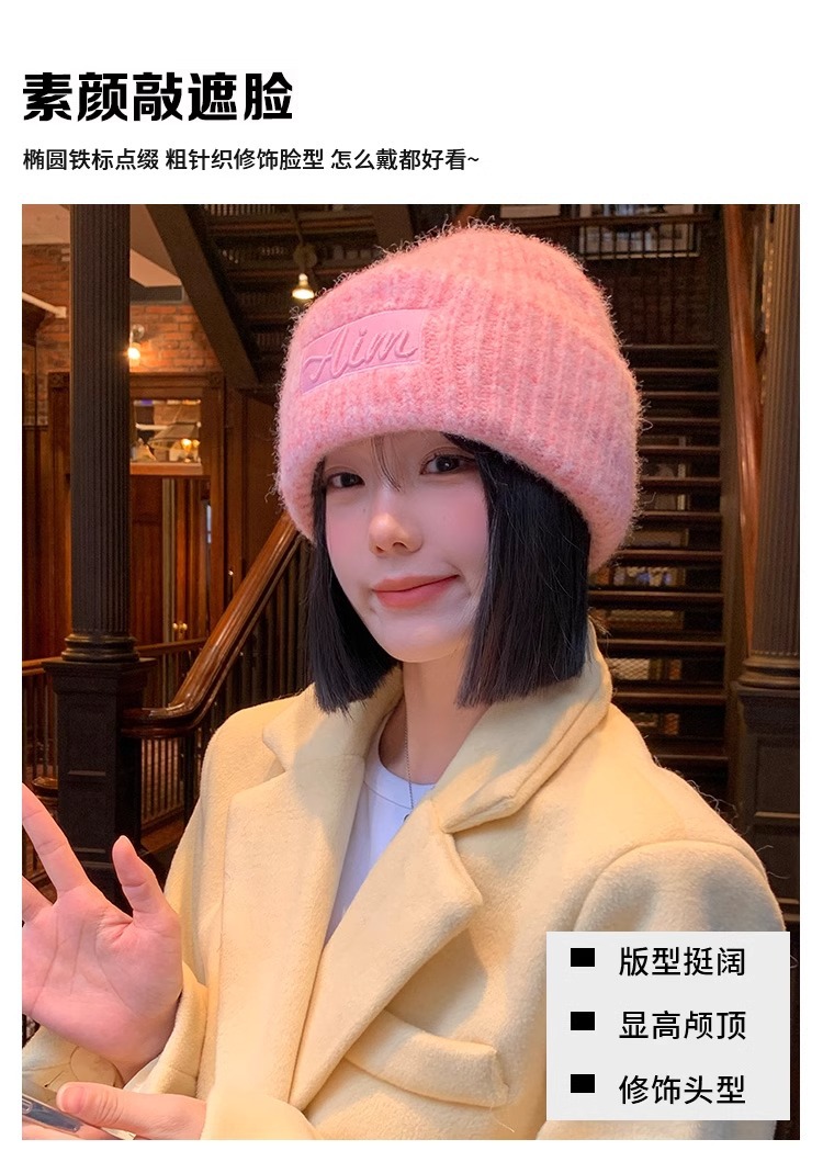 큰 머리 둘레 핑크 니트 울 모자 여성의 2024 가을과 겨울 얼굴 작은 올 매치 모자 따뜻한 귀 보호 차가운 모자스토어 가기