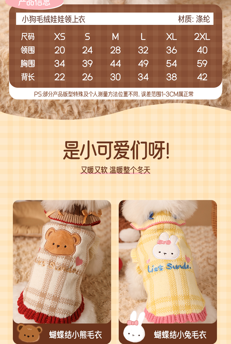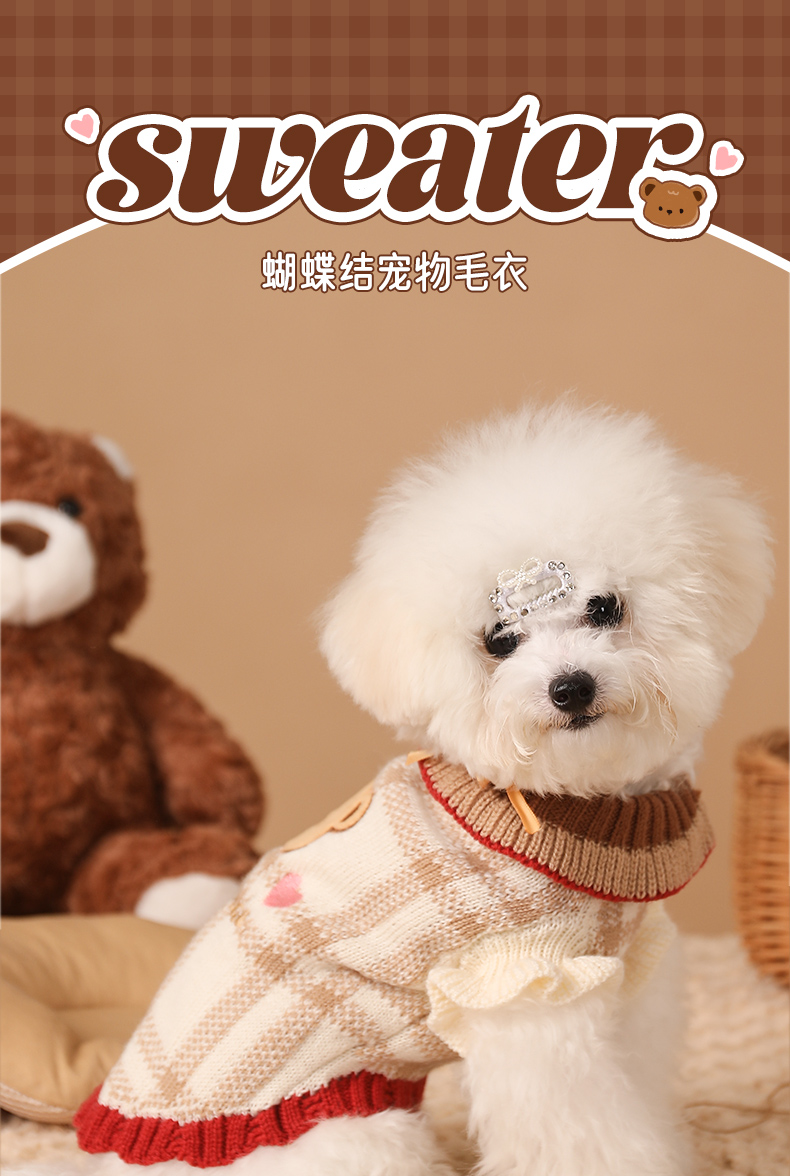 【品名】:HOOPET 蝴蝶结小兔毛衣