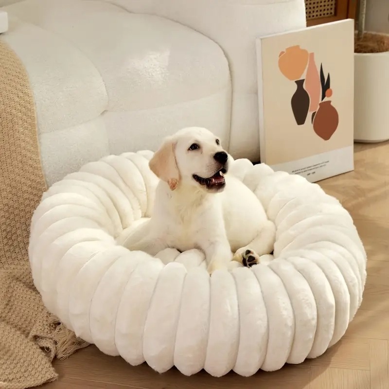 겨울용 따뜻한 토끼털 원형 개집, 초대형, 높이 및 두께 증가, 미끄럼 방지 수면 매트, 애완견 및 고양이 공용스토어 가기