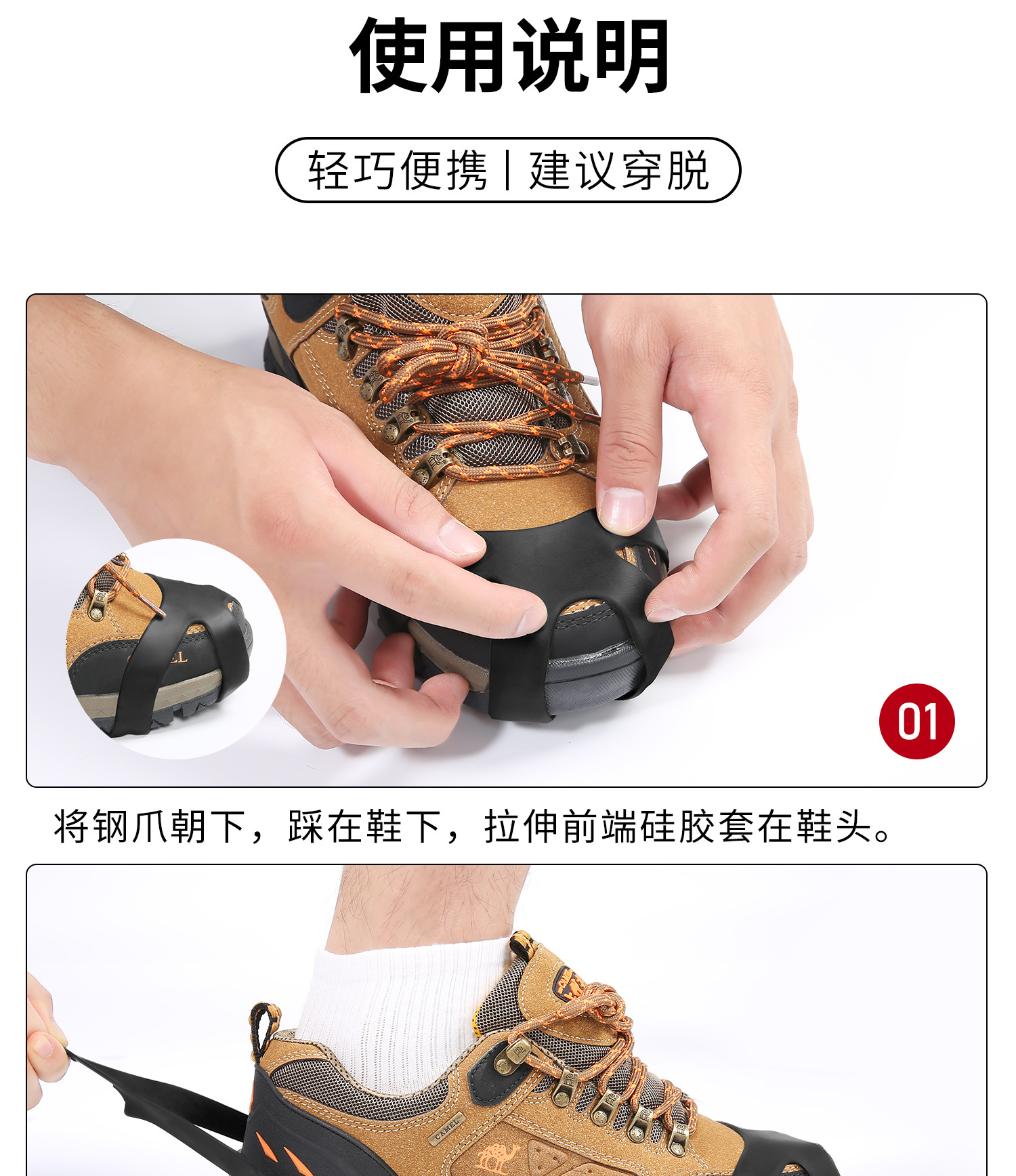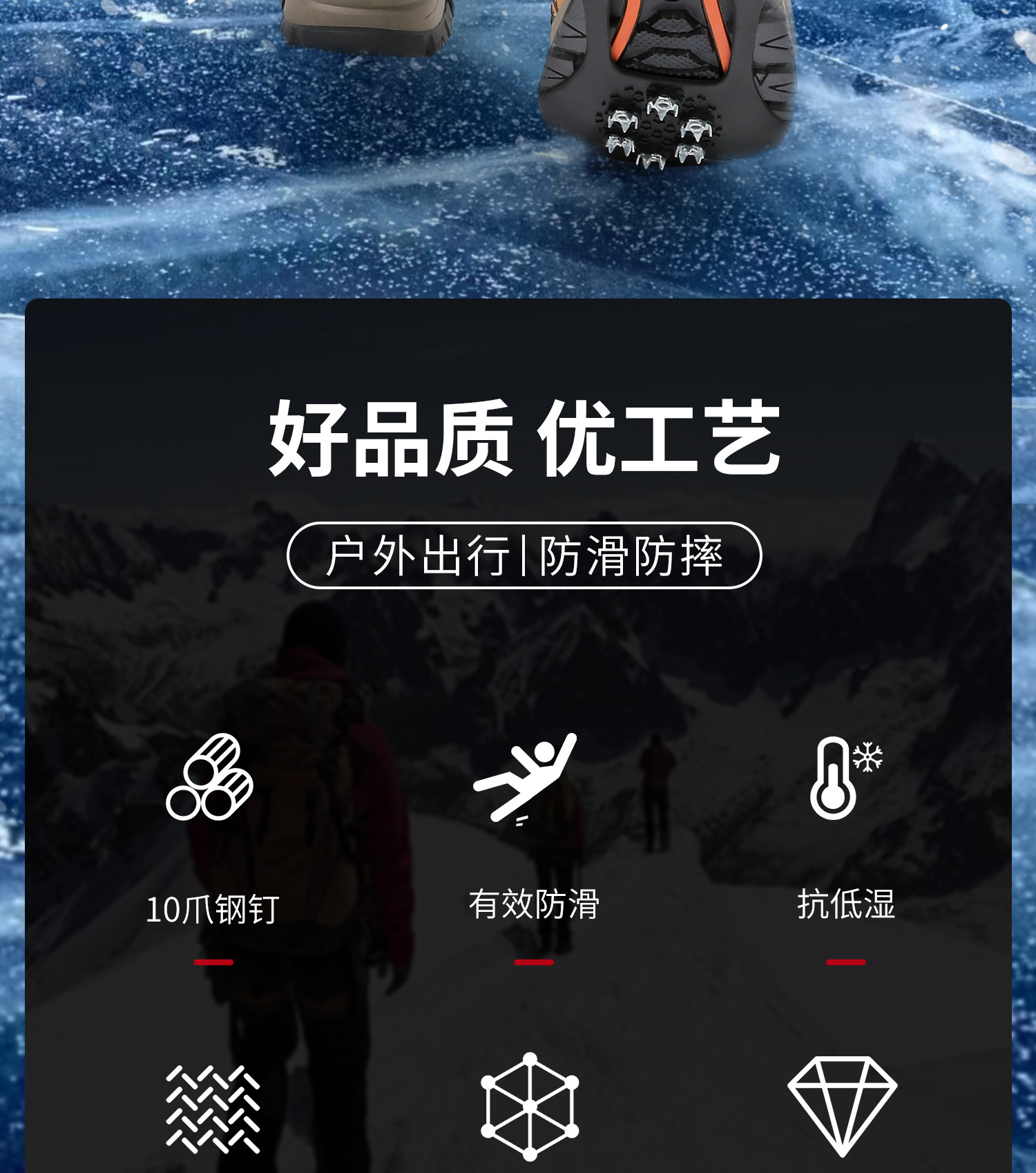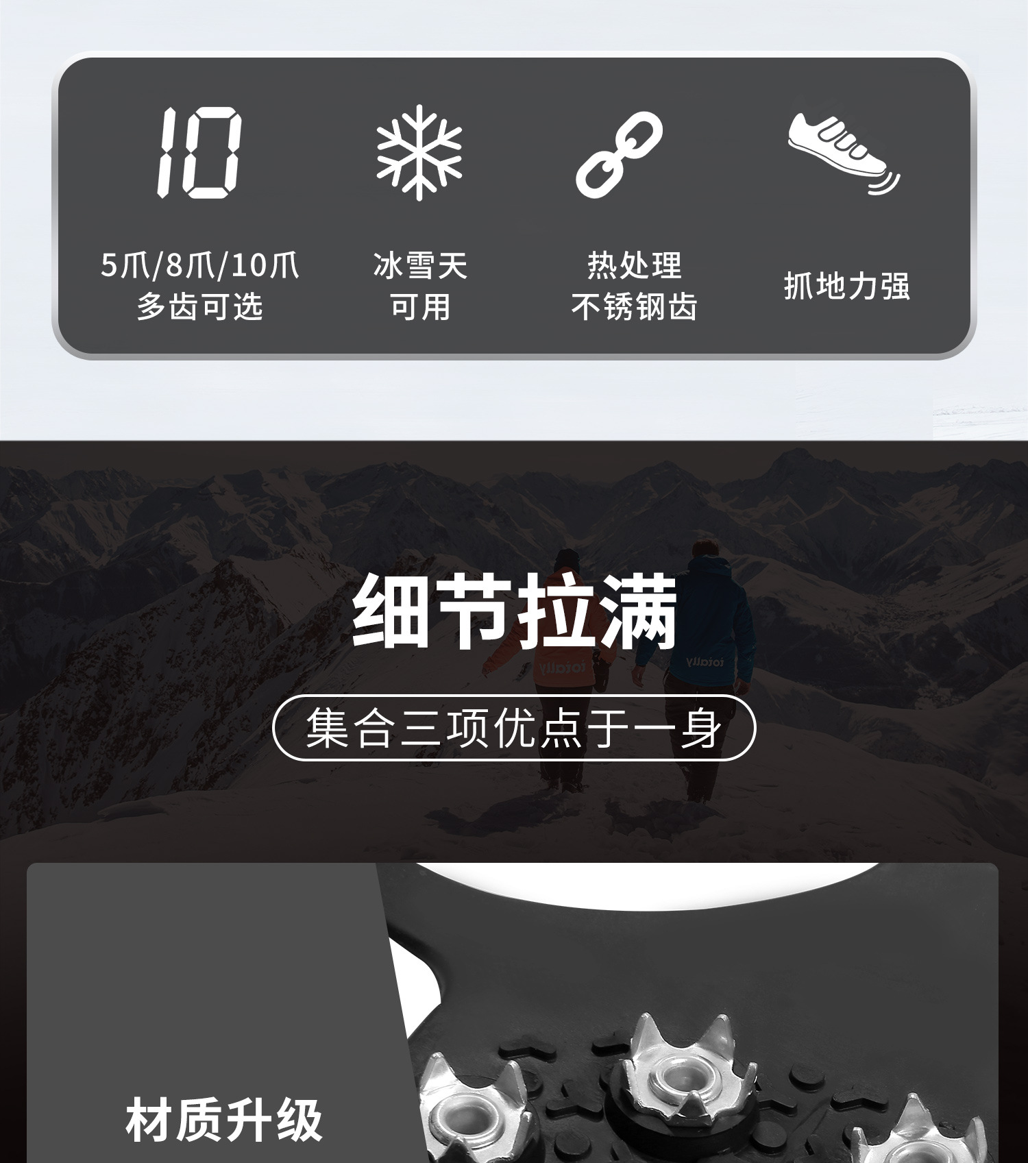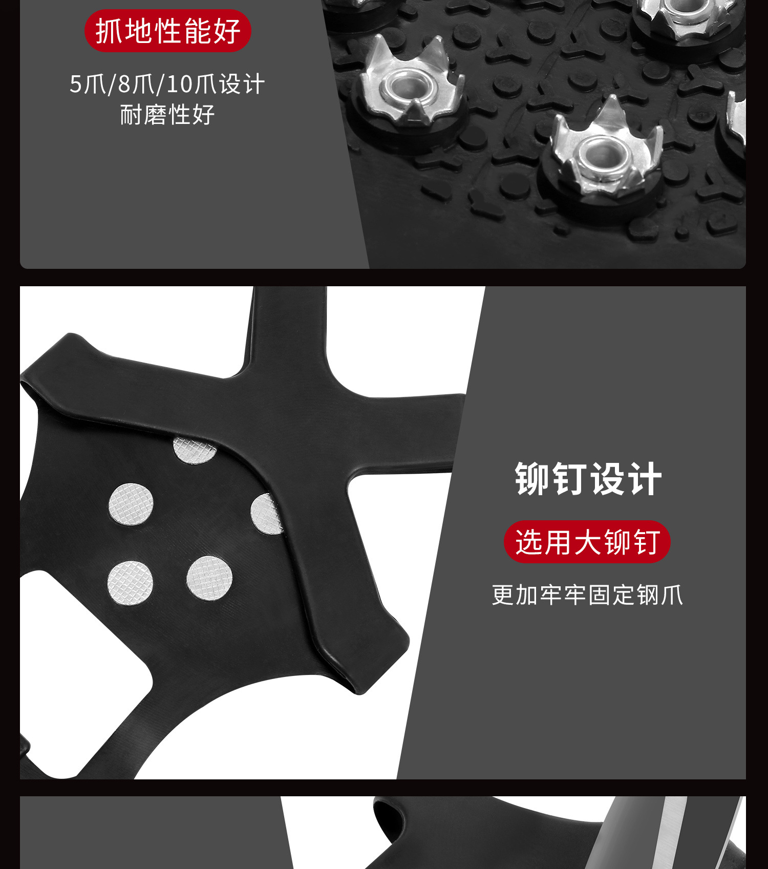 얼음 발톱 미끄럼 신발 커버 야외 얼음과 눈 겨울 스파이크 단독 인공물 등반 다섯 이빨 눈 발톱 노인 어린이