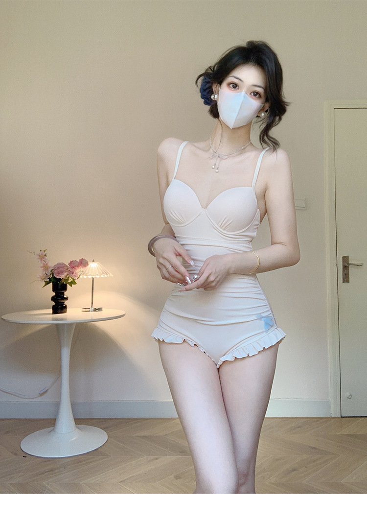 2025 새로운 나비 긴팔 수영복 여성 스커트 원피스 배꼽 커버 슬리밍 순수 학생들이 휴가 도매를 위해 온천에 몸을 담그고 싶어