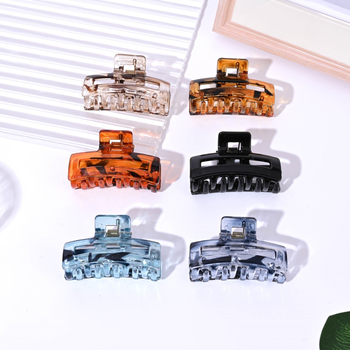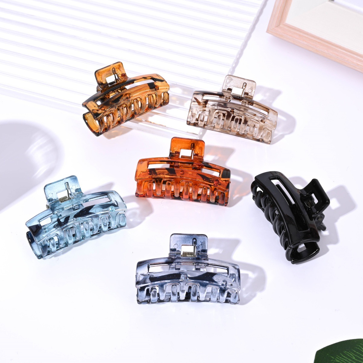 투명 컬러 레오파드 도트 중형 할로우 스퀘어 단순 올 매치 클래식 여성 헤어 클로 크로스 보더 뉴 하프 타이 헤어 액세서리