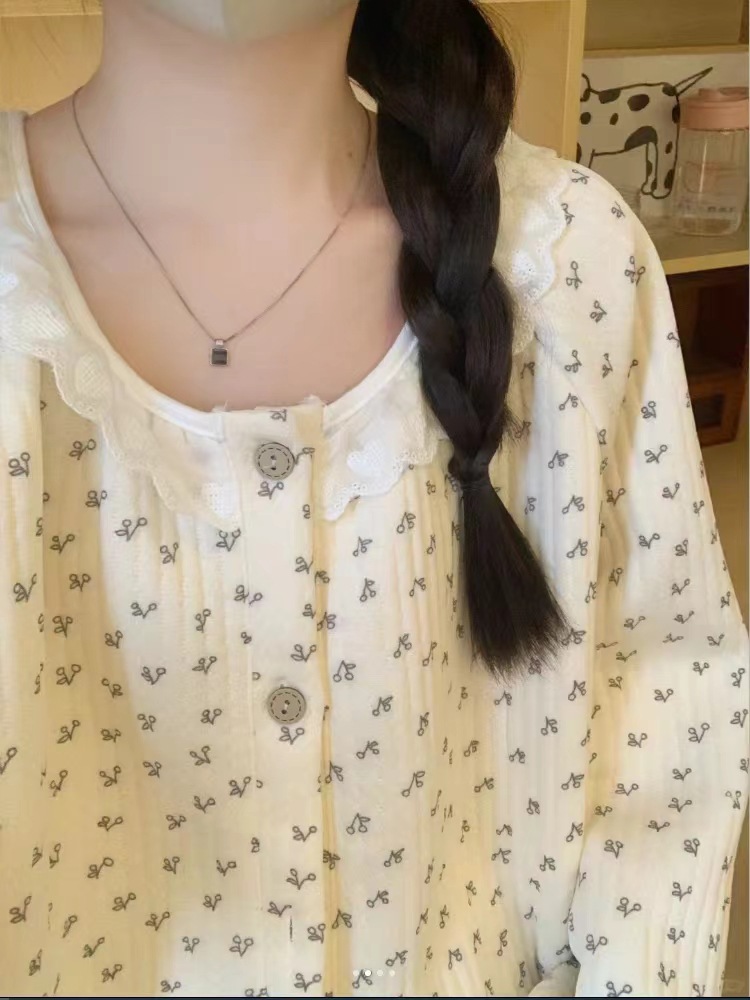 가을과 겨울 2024 새로운 달콤한 레이스 크루 넥 꽃 잠옷 여성의 두꺼운 공기 퀼트 따뜻한 홈 의류 세트스토어 가기