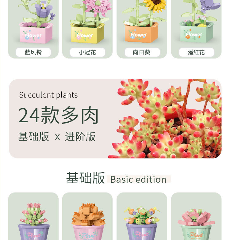 레고 빌딩 블록 Fleshy 화분 식물 장식품 모델 어린이 조립 미세 입자 빌딩 블록 꽃 교육 완구 도매와 호환스토어 가기