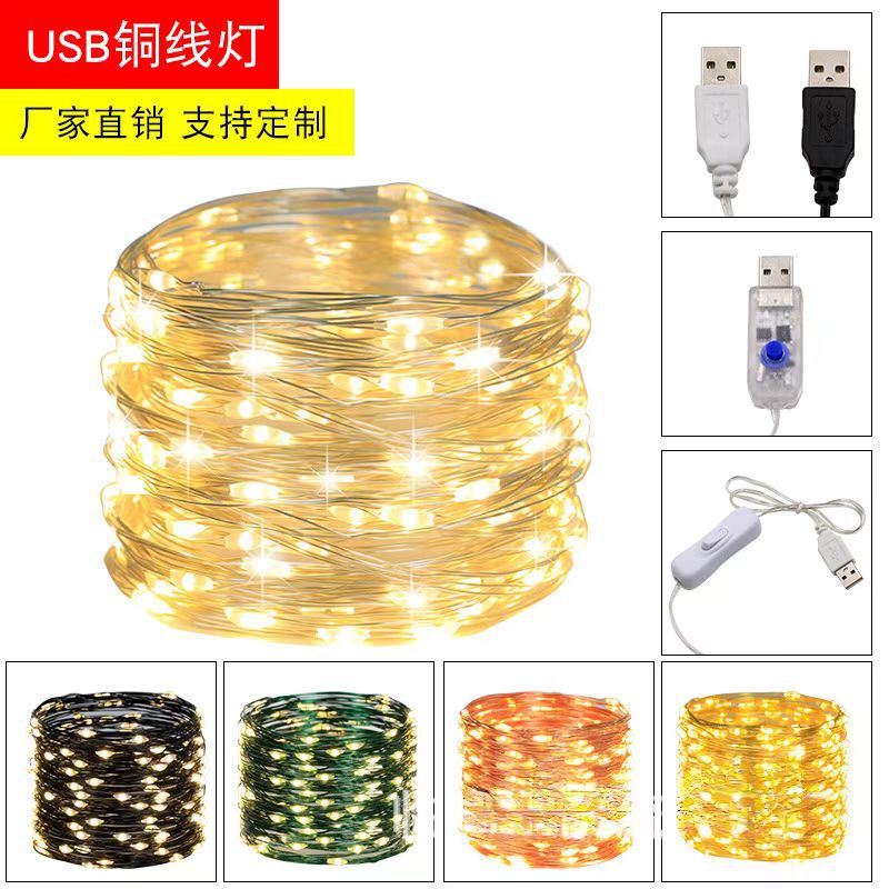 Usb 구리 와이어 빛 끈 크리스마스 led 빛 문자열 케이크 웨딩 꽃 방 장식 원격 제어 8 기능 구리 와이어 램프