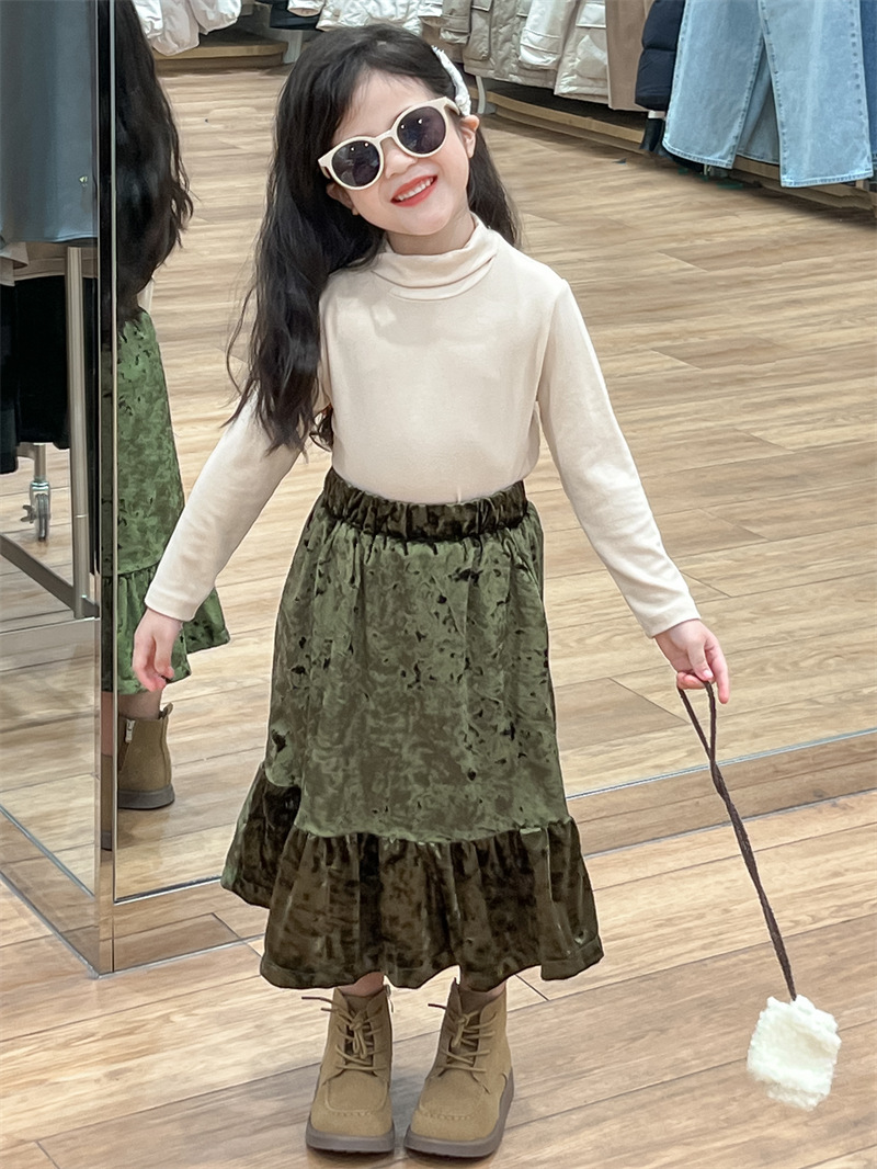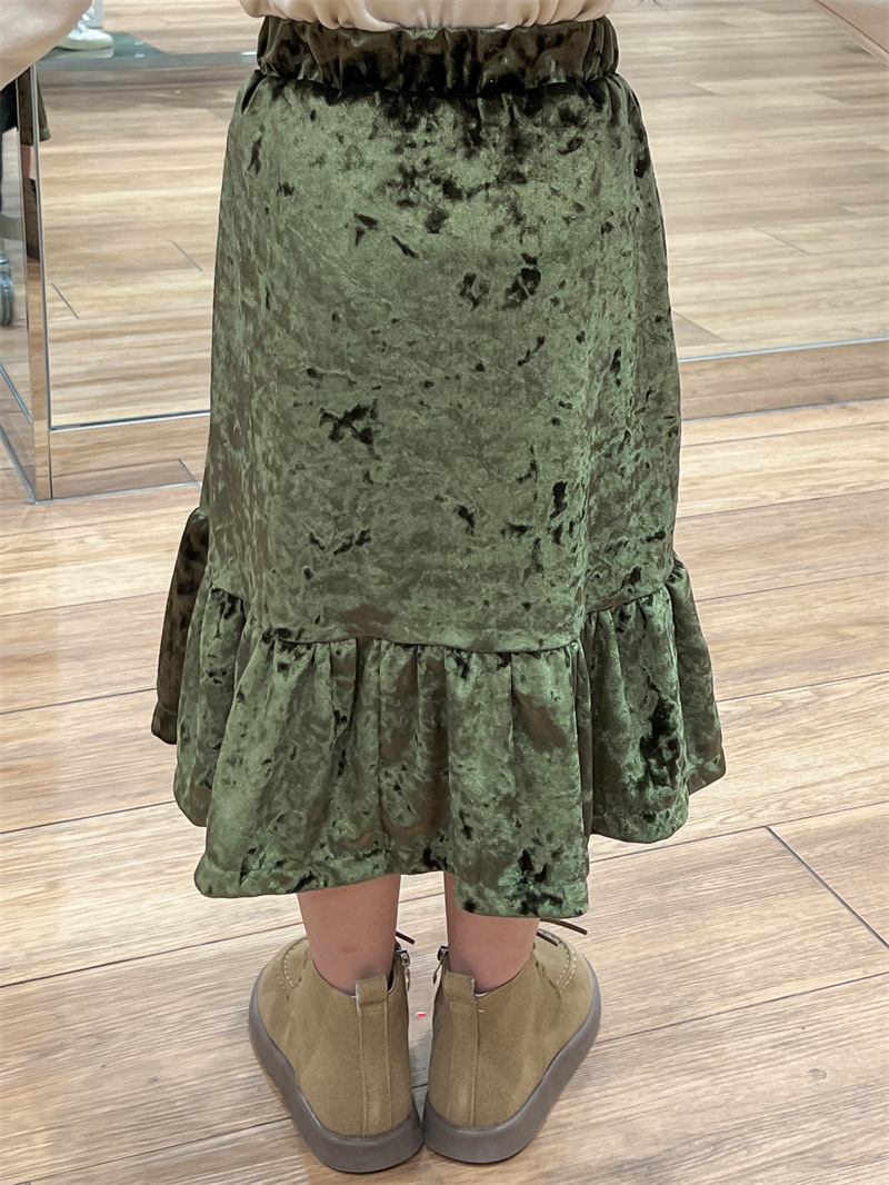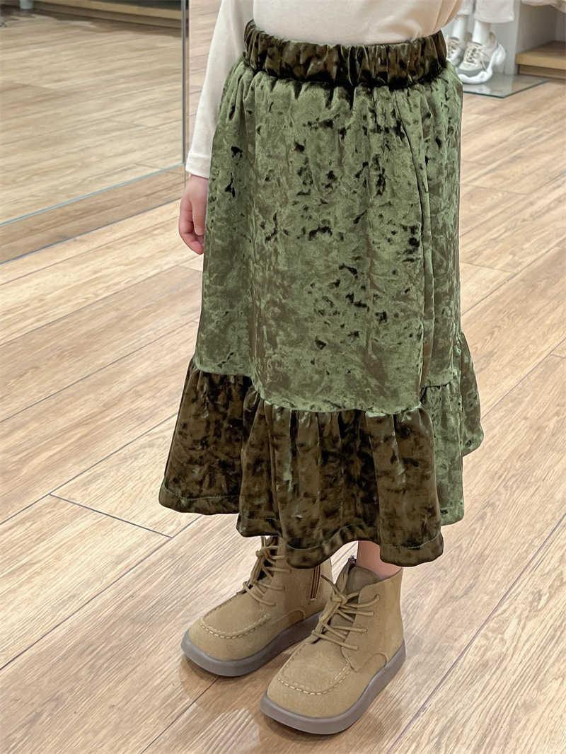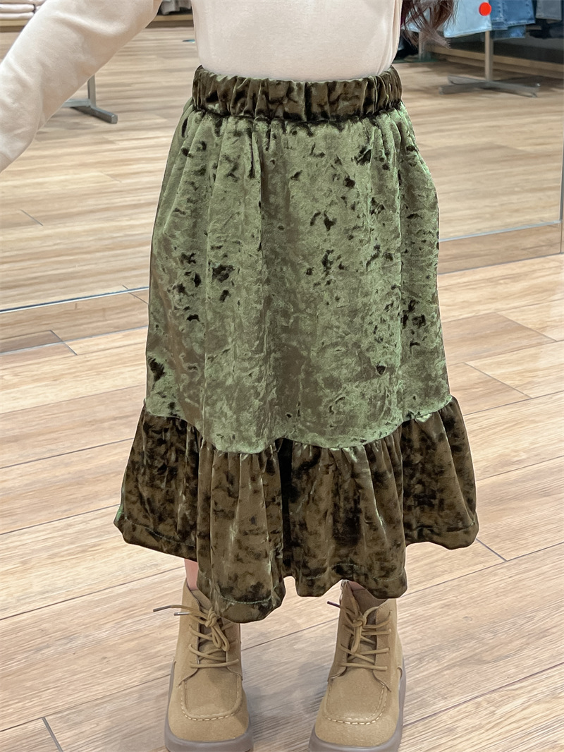 기모 두껍게 ~ 대외 무역 아동복 소녀 따뜻한 서양식 그린 골드 다이아몬드 벨벳 느슨한 허리 연꽃 잎 스윙 스커트스토어 가기