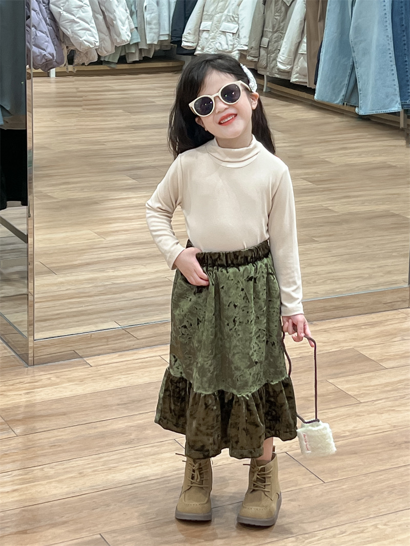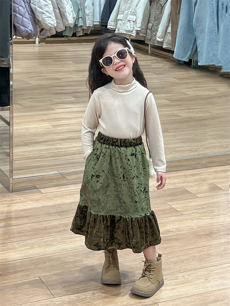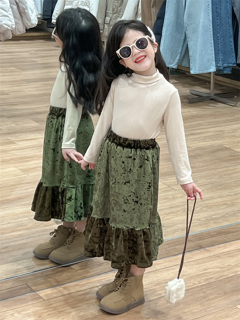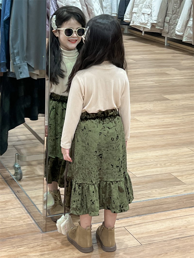 기모 두껍게 ~ 대외 무역 아동복 소녀 따뜻한 서양식 그린 골드 다이아몬드 벨벳 느슨한 허리 연꽃 잎 스윙 스커트스토어 가기